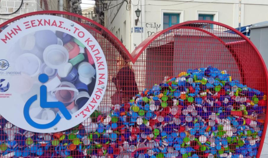Συγκεκριμένα, δεν περνά μέρα που πολίτες να μην εναποθέτουν πλαστικά καπάκια στους εντυπωσιακούς “κάδους” σε σχήμα καρδιάς, ανταποκρινόμενοι στην πρωτοβουλία του Δήμου Σύρου – Ερμούπολης για καλό σκοπό.