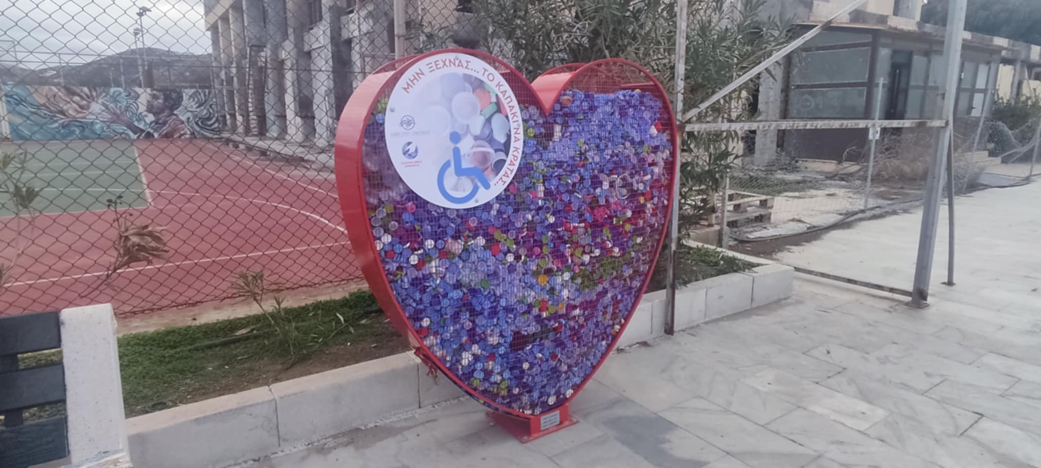 Συνεχώς γεμάτες είναι οι κόκκινες καρδιές στο παραλιακό τμήμα της πόλης και στο Αθλητικό Κέντρο του Δήμου Σύρου – Ερμούπολης από πλαστικά καπάκια, καθώς η τοπική κοινωνία έχει “αγκαλιάσει” με ιδιαίτερη θέρμη, τη συγκεκριμένη δράση ανακύκλωσης.
