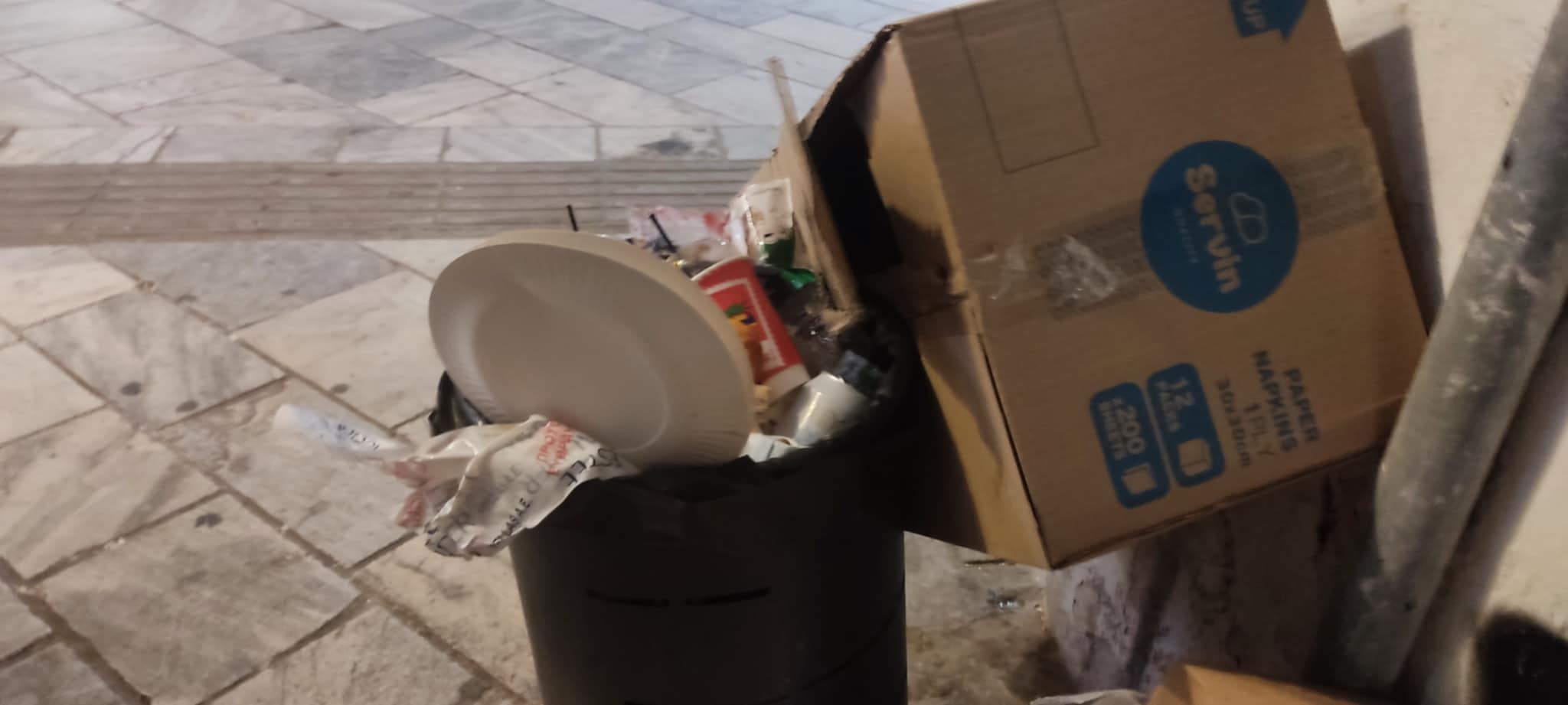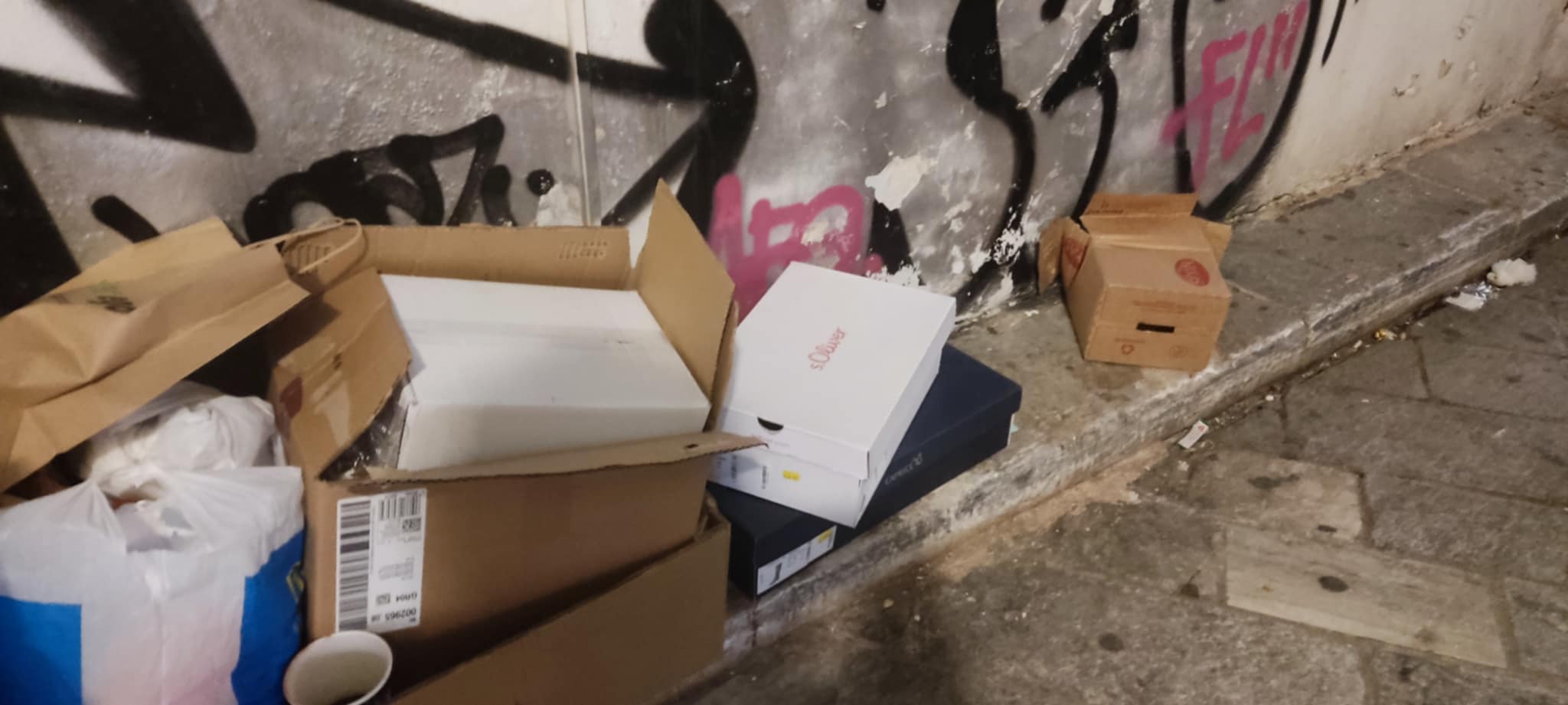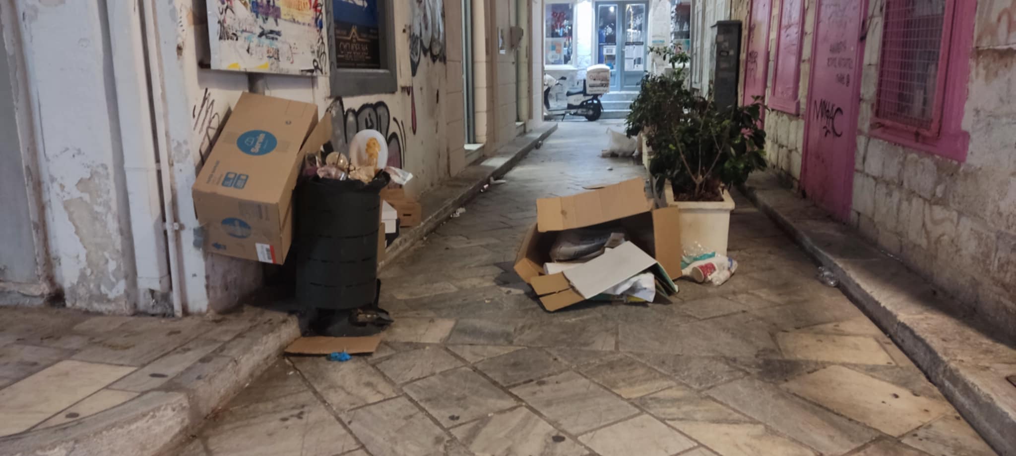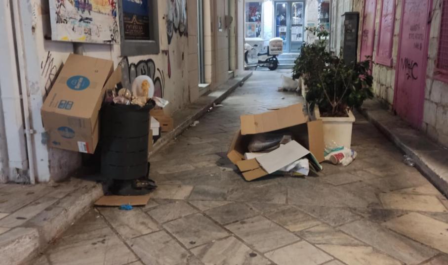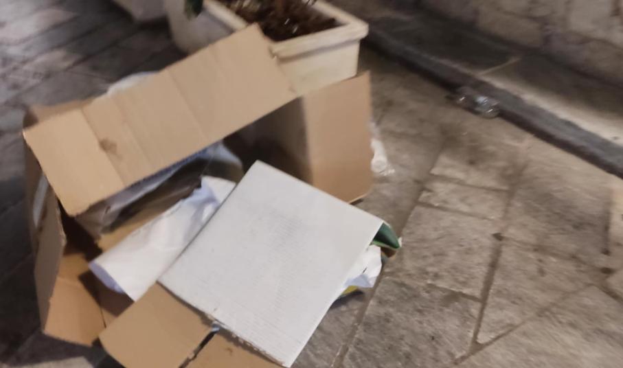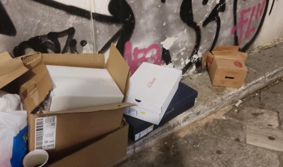 Προ ημερών, διαπιστώθηκε πως αφέθηκαν ξανά μεγάλες κούτες, χωρίς μάλιστα να είναι σπασμένες, δίπλα από τον μικρό κάδο απορριμμάτων έξω από τις δημοτικές τουαλέτες της οδού Ανάφης, προκαλώντας μία χαοτική κατάσταση στον μικρό πεζόδρομο.