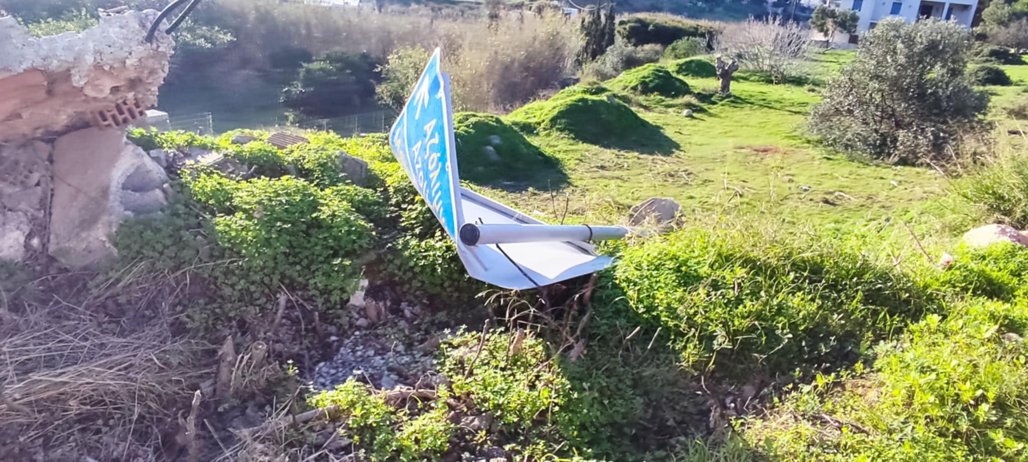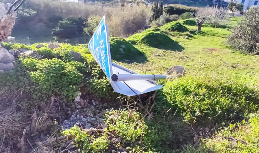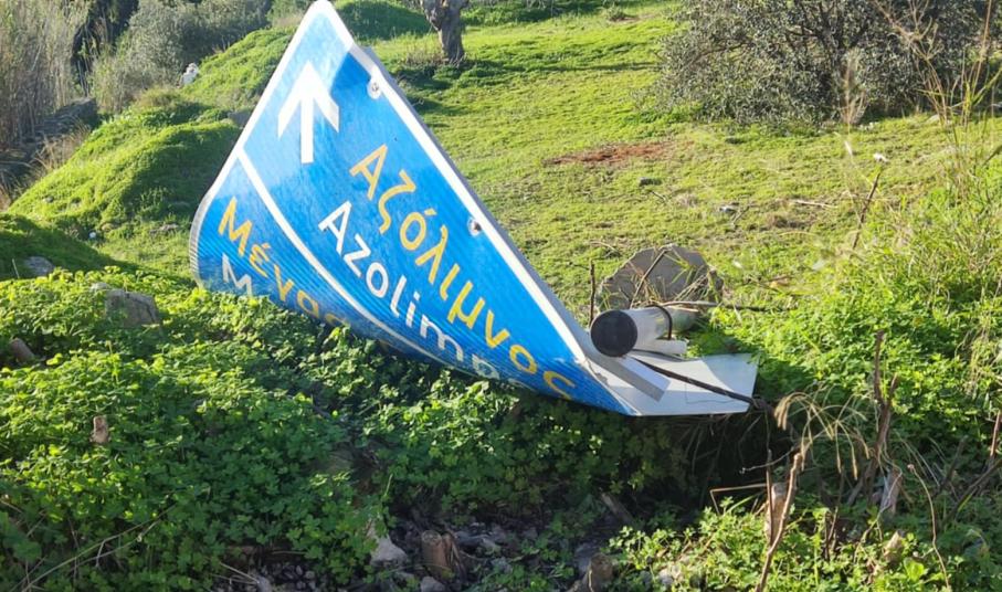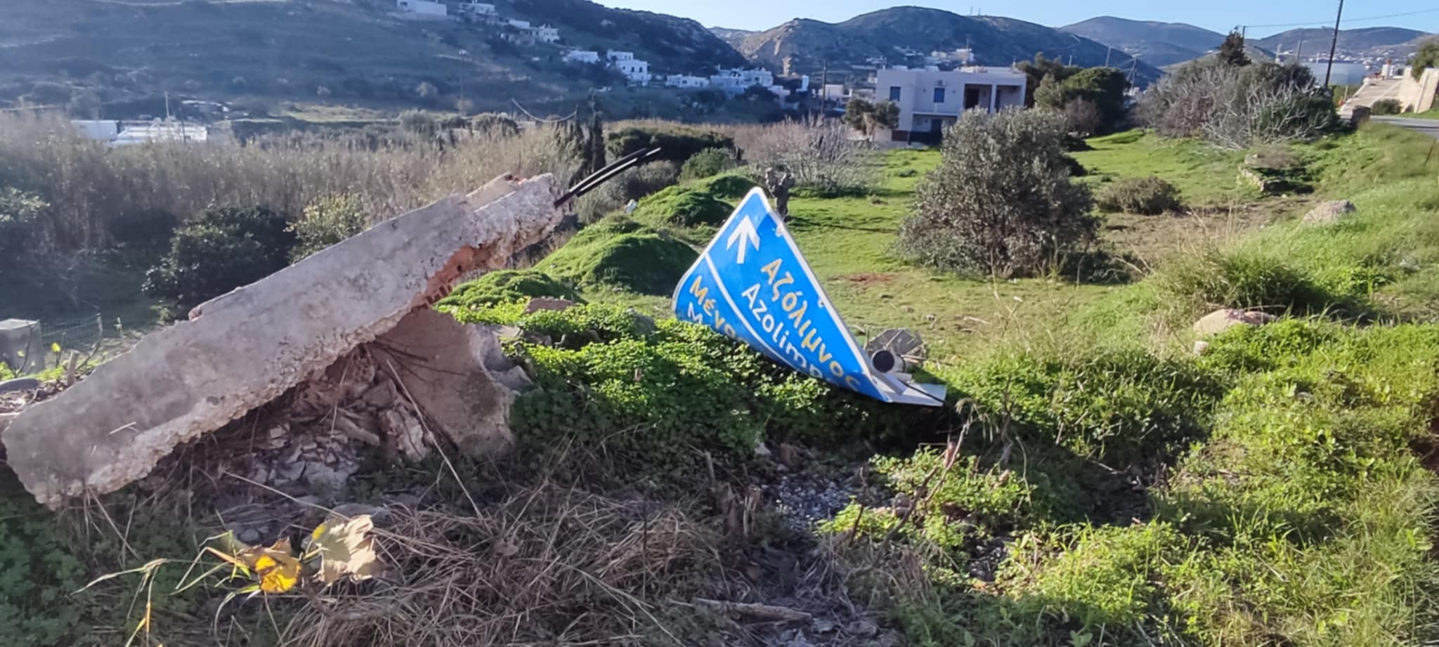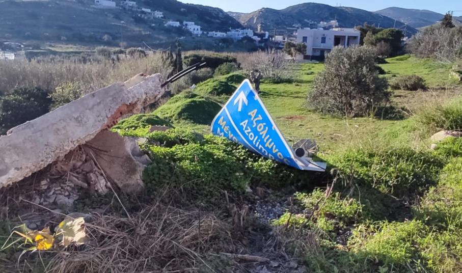 Ειδικότερα, η πινακίδα που άλλοτε ενημέρωνε τους οδηγούς για τους προορισμούς της Βάρης, της Αζολίμνου και του Μέγα Γιαλού, φαίνεται να αποκολλήθηκε(;) από την αρχική θέση της και να πετάχτηκε στην άκρη του δρόμου. Διερχόμενοι πολίτες έχουν ενημερώσει κατ΄ επανάληψη για την κατάσταση στο σημείο, ωστόσο, μέχρι σήμερα, δεν έχει υπάρξει κάποια εργασία επανατοποθέτησης.