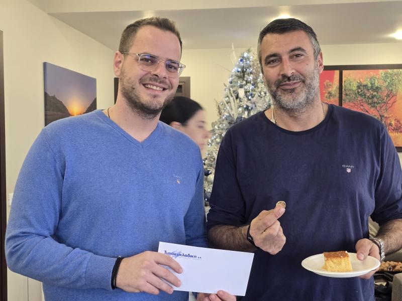Το φλουρί της πίτας “έπεσε” στον τυχερό του 2025, Λούη Γαδ, ο οποίος έλαβε το δώρο του από τον πρόεδρο της εταιρείας, Ιωσήφ Βακόνδιο, τον διευθύνοντα σύμβουλο, Μάριο Βακόνδιο και τον βασικό μέτοχο και εκδότη, Γιώργο Βακόνδιο.