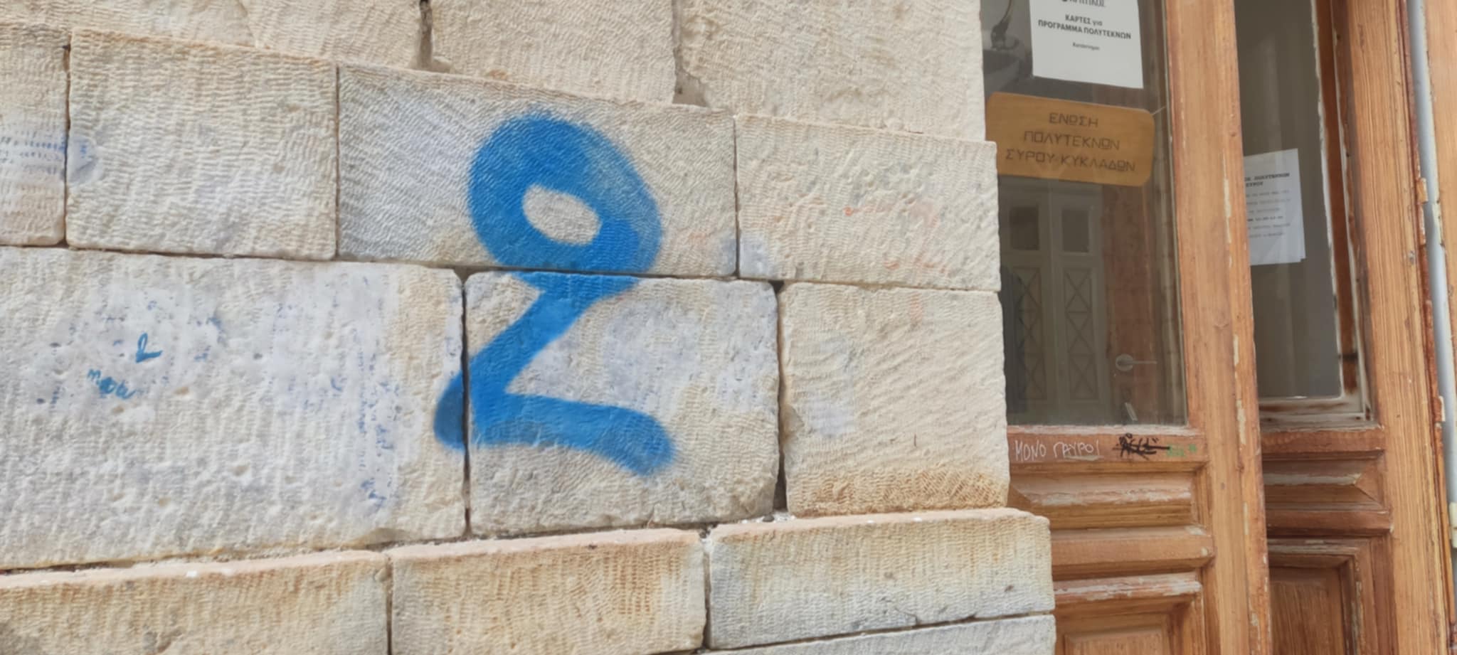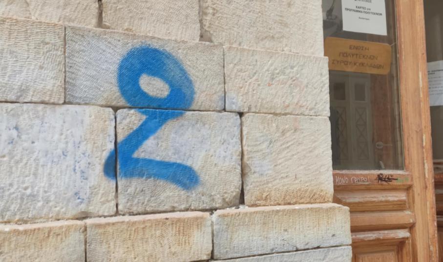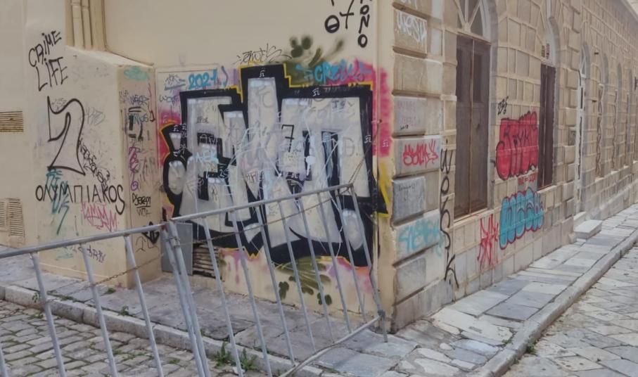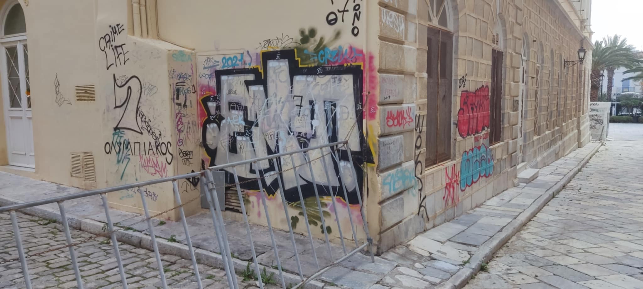 Δίχως τέλος είναι οι “επιθέσεις” με σπρέι που δέχεται το Δημαρχείο Σύρου – Ερμούπολης από αγνώστους, με αποτέλεσμα την αισθητική υποβάθμισή του από την πλευρά που κανονικά αποκλείεται η πρόσβαση στους πολίτες για λόγους ασφάλειας.