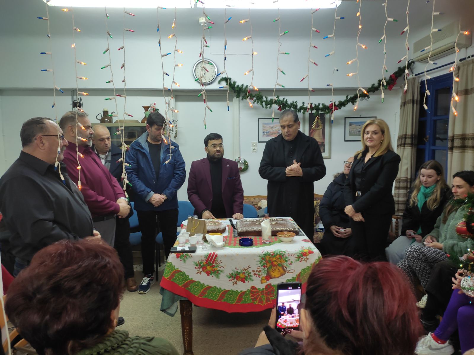 Τις αγιοβασιλειόπιτες ευλόγησαν ο εφημέριος των ενοριών Μεταστάεως της Θεοτόκου Κινίου και Αγίου Σεβαστιανού πατέρας Φερνάντο Μπράβο και ο συνφημέριος πατέρας Μιχάλης Περτίνι (π. Michael Pertini).