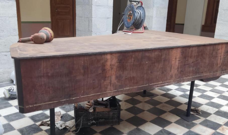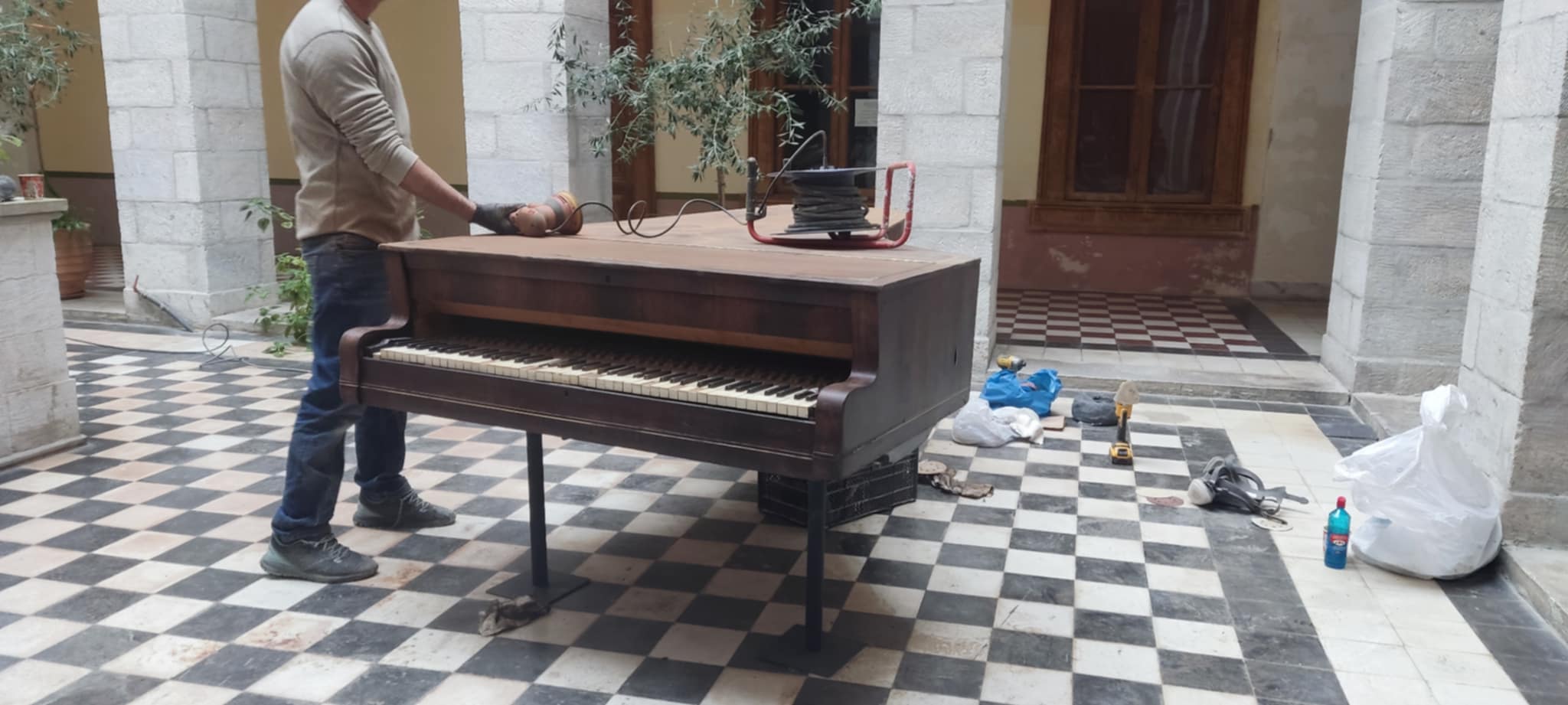 Οι εργασίες προχωρούν με εντατικούς ρυθμούς και εντός των επόμενων ημερών ο Δήμος Σύρου – Ερμούπολης θα έχει το πιάνο – αντίκα συντηρημένο.