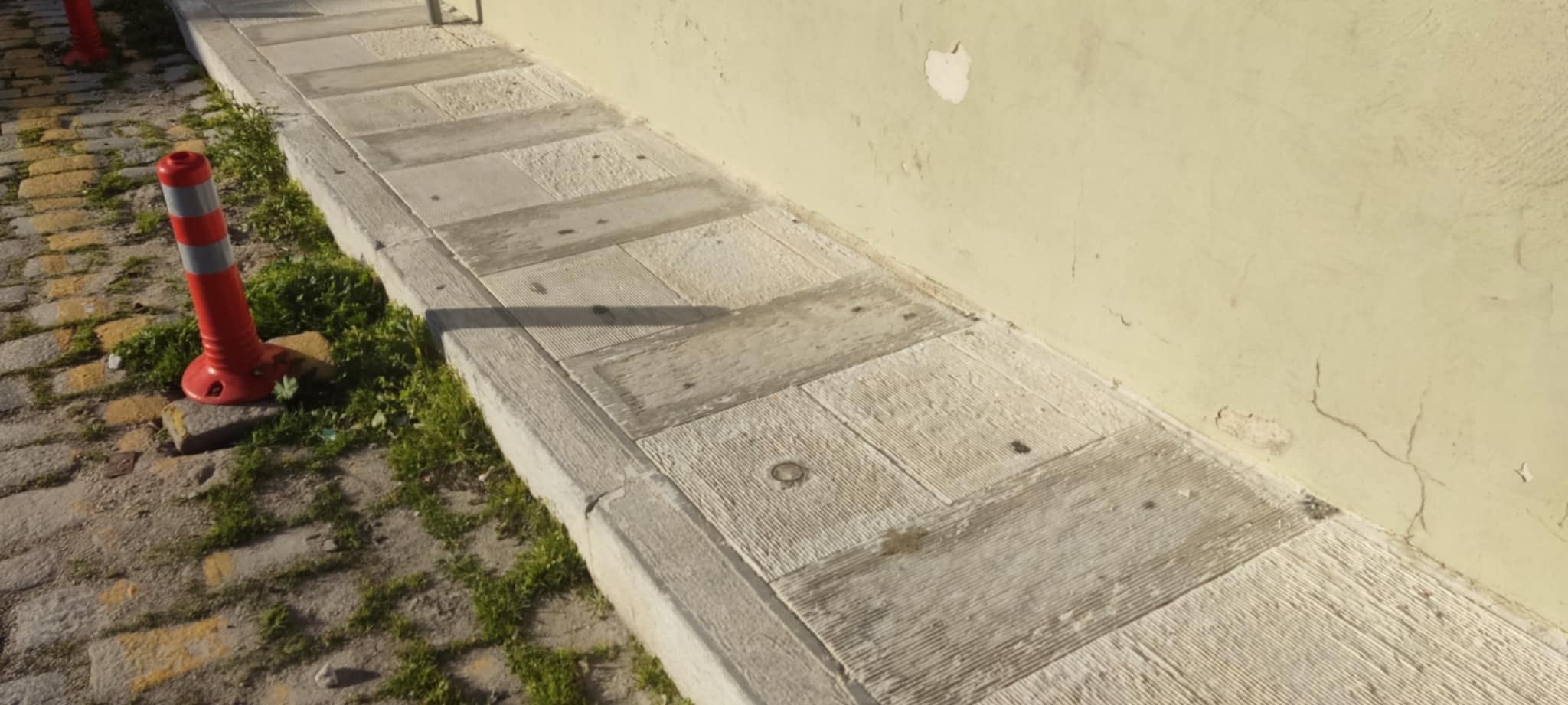 “Ανοιχτή” παραμένει η ορθή αποκατάσταση των πεζοδρομίων στις οδούς Φολεγάνδρου και Αφροδίτης, τα οποία και ανοίχτηκαν προσφάτως για το έργο της υπογειοποίησης του δικτύου φωτισμού στην Ερμούπολη, καθώς αισθητικά δεν έχουν “δέσει” με τα υπόλοιπα τμήματα.
