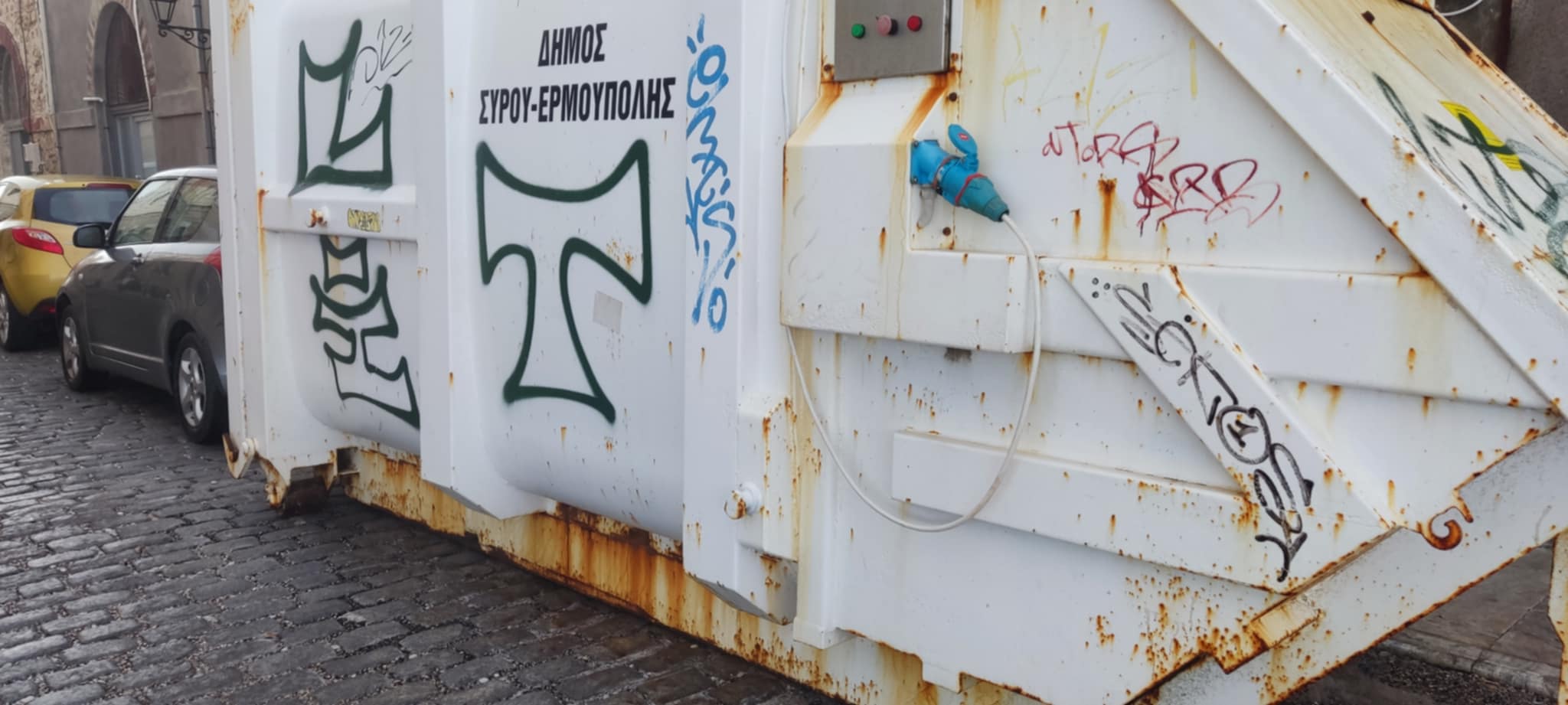 Παντελώς αντιαισθητική είναι η εικόνα των σημείων που βρίσκονται τοποθετημένα τα κοντέινερ για τα απορρίμματα, στην Ερμούπολη, η οποία και επιδεινώνεται σοβαρά από την ανυπαρξία συντηρήσεων.