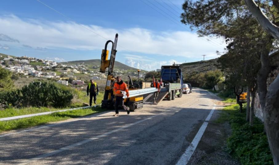 Σημαντική φροντίδα λαμβάνει η Περιφέρεια Ν. Αιγαίου για τη διέλευση των οδηγών από το επαρχιακό οδικό δίκτυο της Σύρου, καθώς μετά από εκτεταμένες ασφαλτοστρώσεις σε μεγάλα τμήματα, τοποθετούνται και στηθαία ασφαλείας.