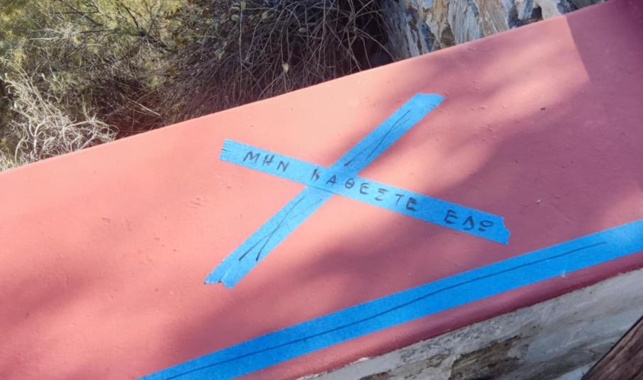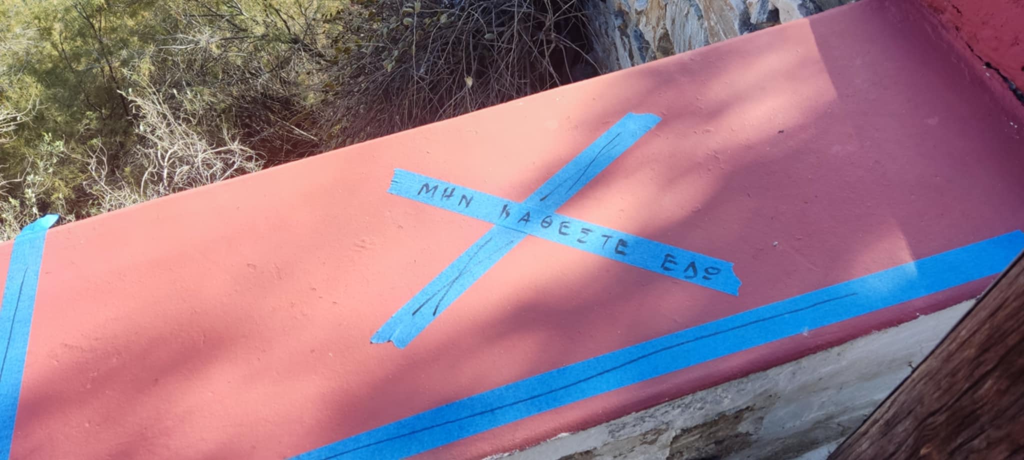 Συγκεκριμένα, στην περιοχή παραμένουν μόνο δύο κιγκλιδώματα τα οποία συχνά μετακινούνται από πολίτες, ενώ η μόνη προειδοποίηση για την ασφάλεια των ανθρώπων, εξαντλείται σε δύο μπλε ταινίες, επί των οποίων αναγράφεται απλώς “μην κάθεστε εδώ”.