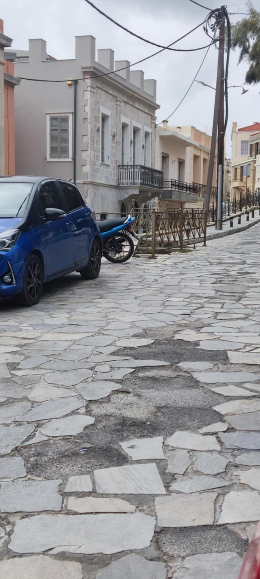 Θλίψη προκαλεί η εικόνα του παραδοσιακού πλακόστρωτου που οδηγεί στην Αστυνομική Διεύθυνση Ν. Αιγαίου, στη συνοικία Βαπόρια της Ερμούπολης, καθώς σε όσα κενά έχουν προκύψει, λόγω σπασμένων μαρμάρων, τοποθετείται σταθερά… άσφαλτος.