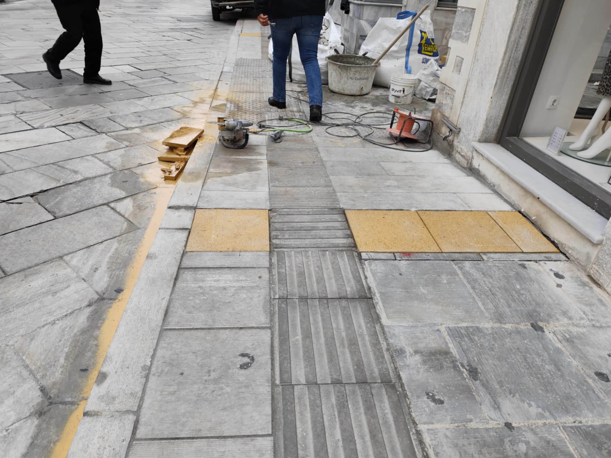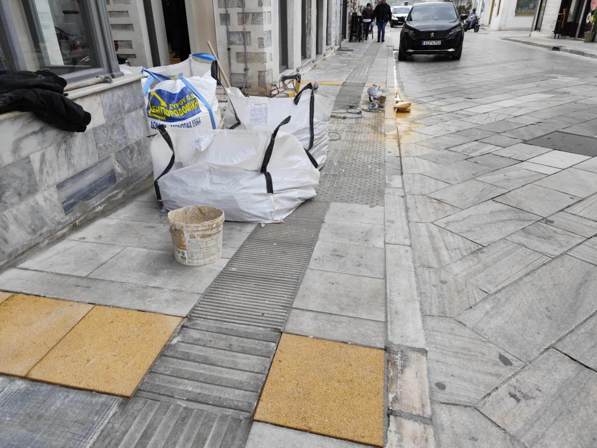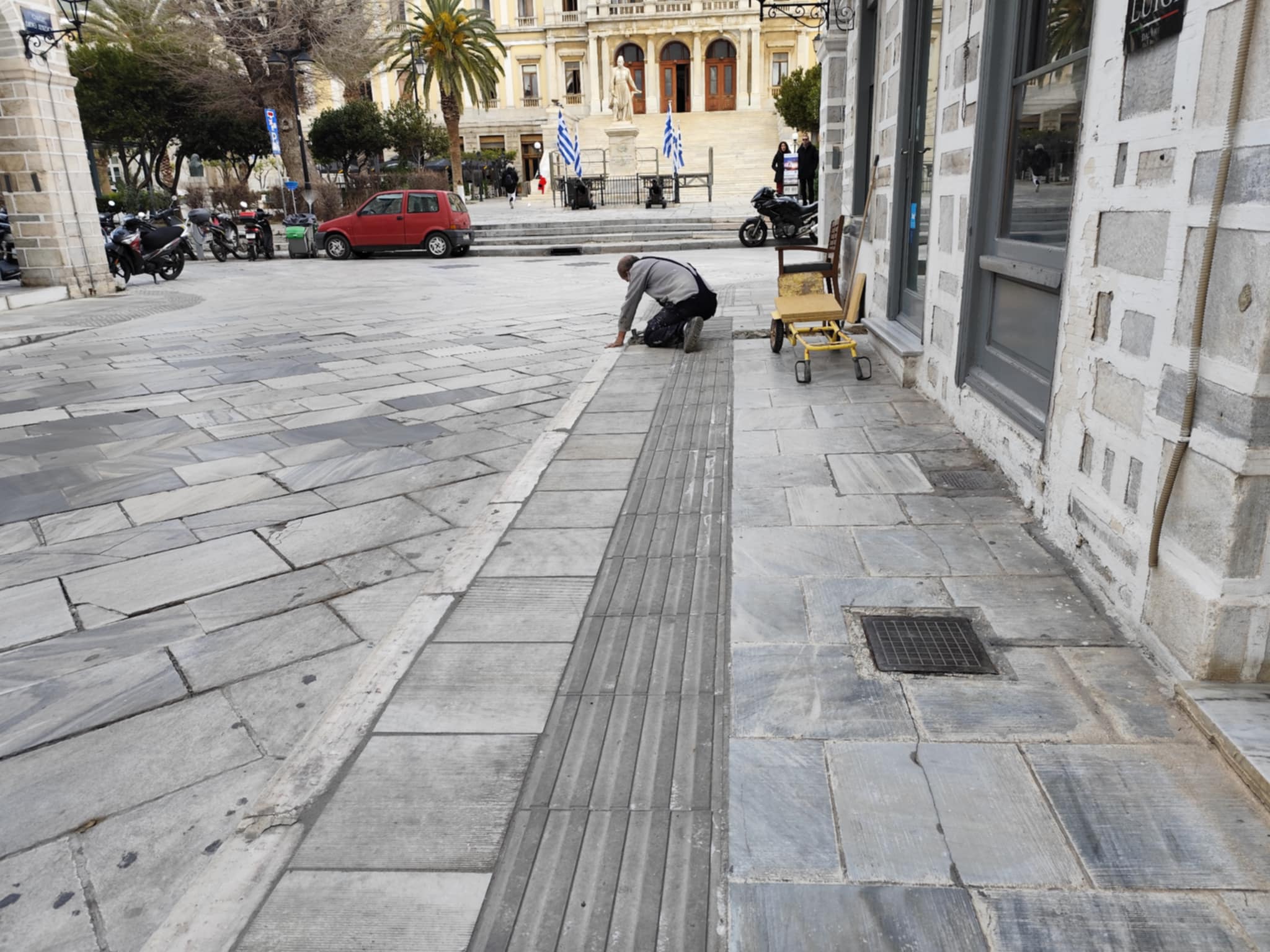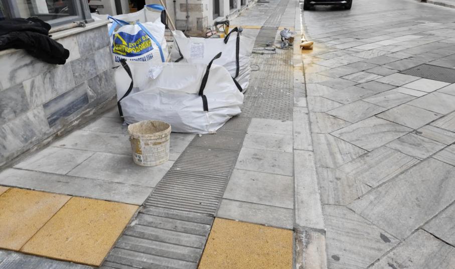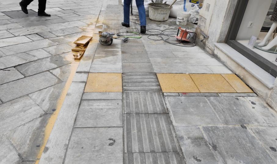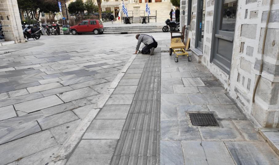 Στις τελικές εργασίες για τη διαμόρφωση κατάλληλων των πεζοδρομίων της οδού Ελ. Βενιζέλου, στην Ερμούπολη, για τα άτομα με προβλήματα όρασης, προχωρά ο Δήμος, τοποθετώντας τις τελευταίες ημέρες τις απαραίτητες κίτρινες πλάκες.
