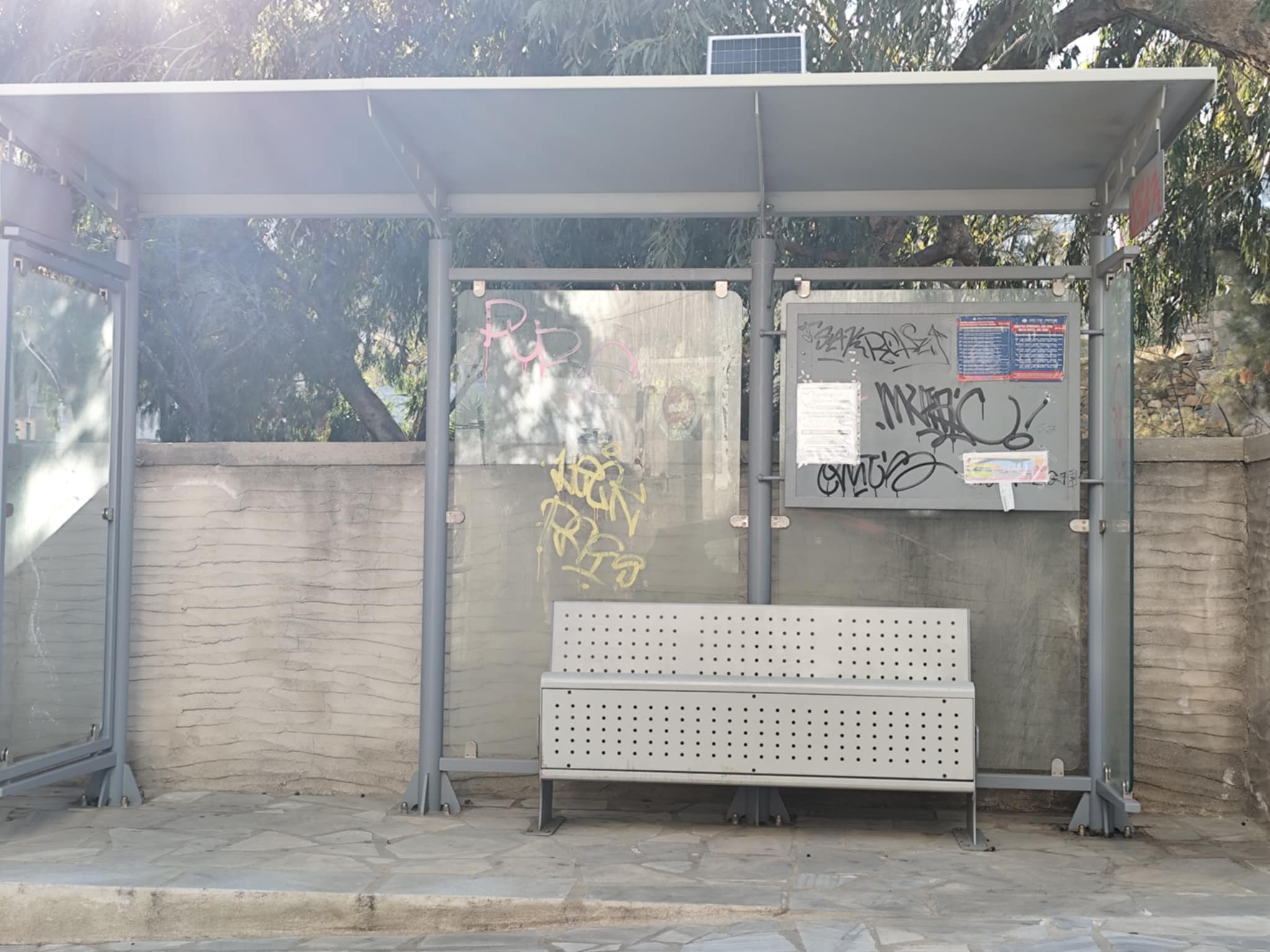 Σε κακή κατάσταση έχουν περιέλθει αισθητικά οι νέες στάσεις αναμονής επιβατών που είχαν τοποθετηθεί στις περιοχές του Αγίου Νικολάου, της Λαλακιάς και του Αγίου Γεωργίου, καθώς άγνωστοι έχουν γεμίσει με σπρέι τις επιφάνειές τους.