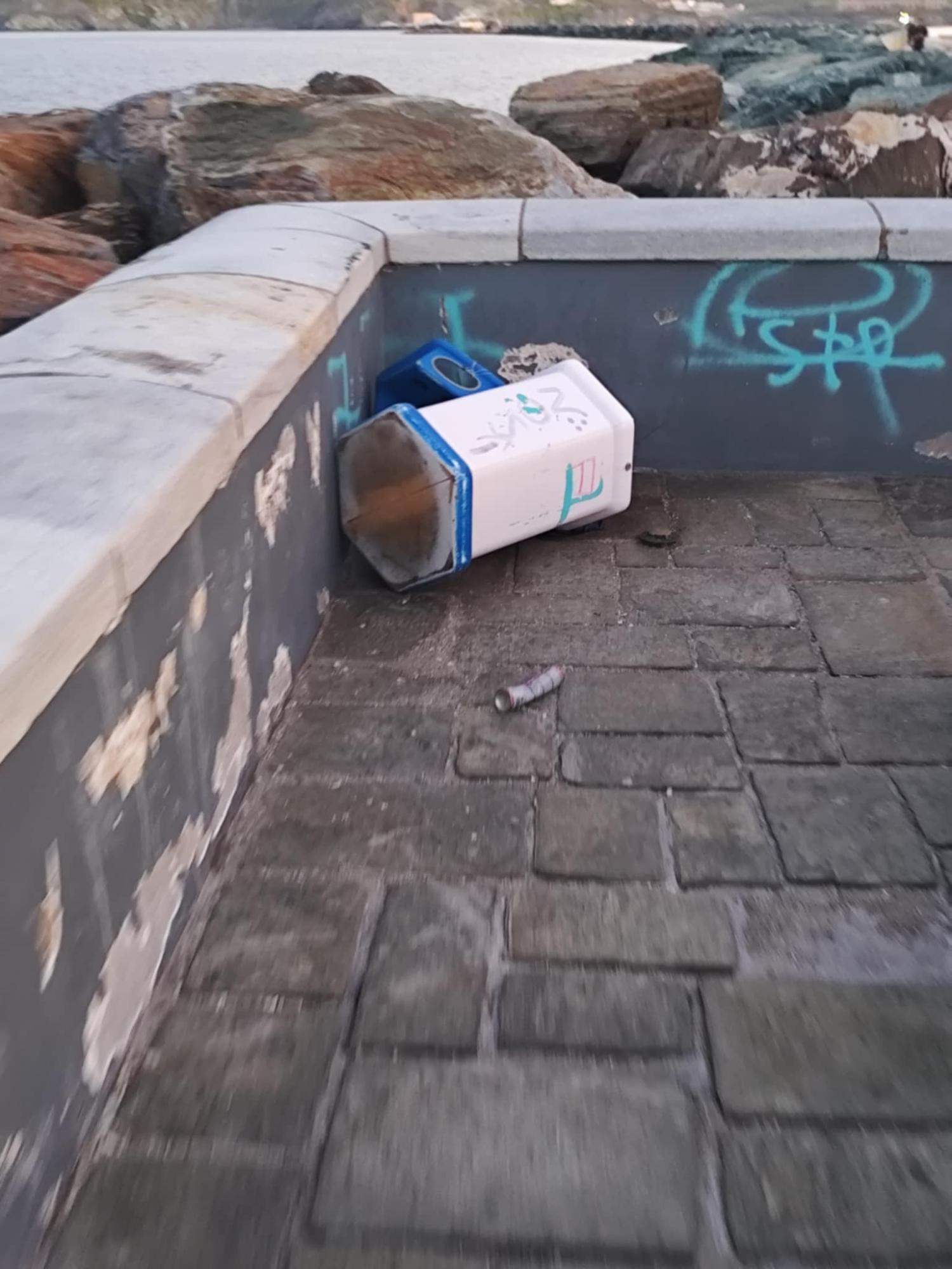 Ειδικότερα, το σημείο με τα πλακοστρωμένα τμήματα που έχει θέα τα Βαπόρια Σύρου, δεν έχει φροντιστεί όπως θα άρμοζε, με αποτέλεσμα πολίτες να έχουν μεταφέρει πολλά παράπονα. Εκτός από το ότι ασυνείδητοι έχουν ρίξει κάτω τον κάδο και έχουν αποκολλήσει το καπάκι του, έχουν αφήσει και συσκευασίες τροφών στο εσωτερικό του. Εντονότερα όμως είναι τα παράπονα για τα περιττώματα των ζώων καθώς, αναδύεται έντονη δυσοσμία.
