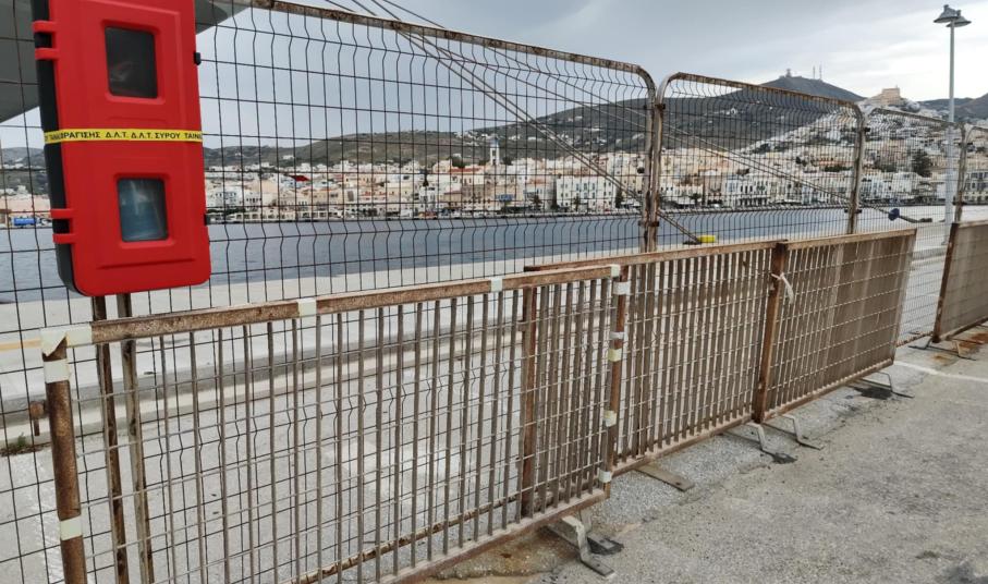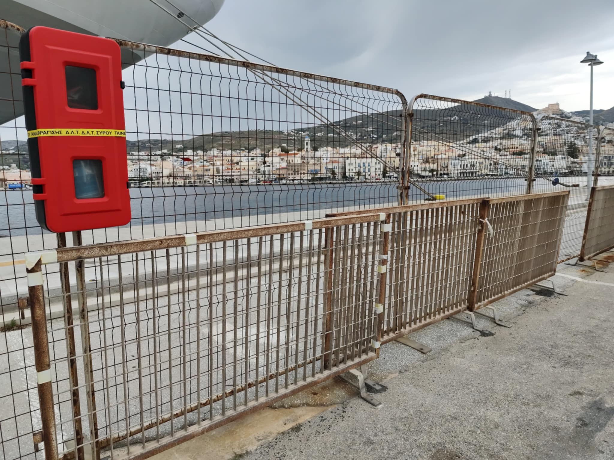 Σε κακή κατάσταση η μικρή περίφραξη στην προβλήτα κρουαζιερόπλοιων στο λιμάνι Ερμούπολης