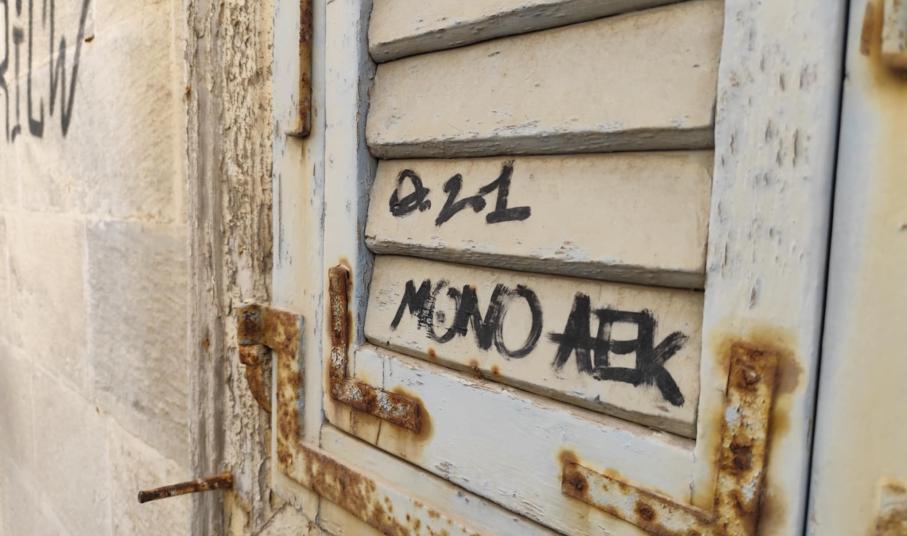 Προκλητικότατα συνεχίζουν άγνωστοι να κάνουν επιθέσεις με σπρέι σε κτήρια της Ερμούπολης, βάφοντάς τα και καταστρέφοντας τις προσόψεις τους.