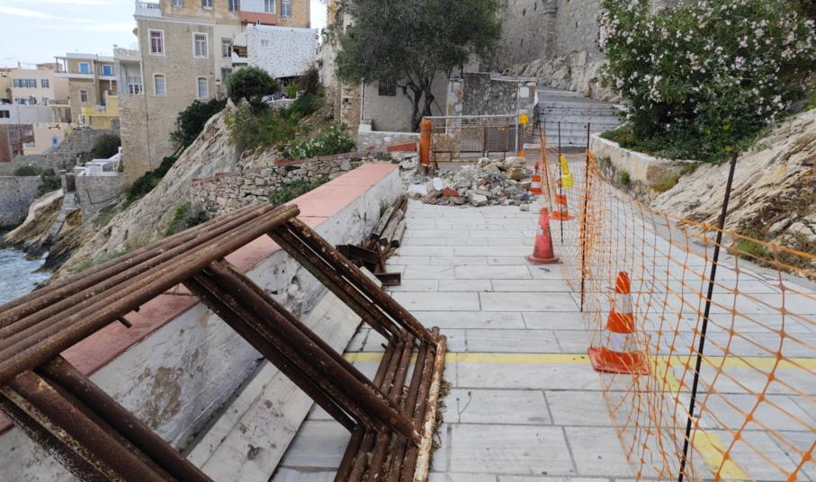 Επανεκκίνησαν οι απαραίτητες εργασίες από τον Δήμο Σύρου – Ερμούπολης αναφορικά με την αποκατάσταση του τοιχίου στα Βαπόρια και συγκεκριμένα στην οδό Αθηνάς, σε συνέχεια απομάκρυνσης στύλου από τον ΔΕΔΔΗΕ.