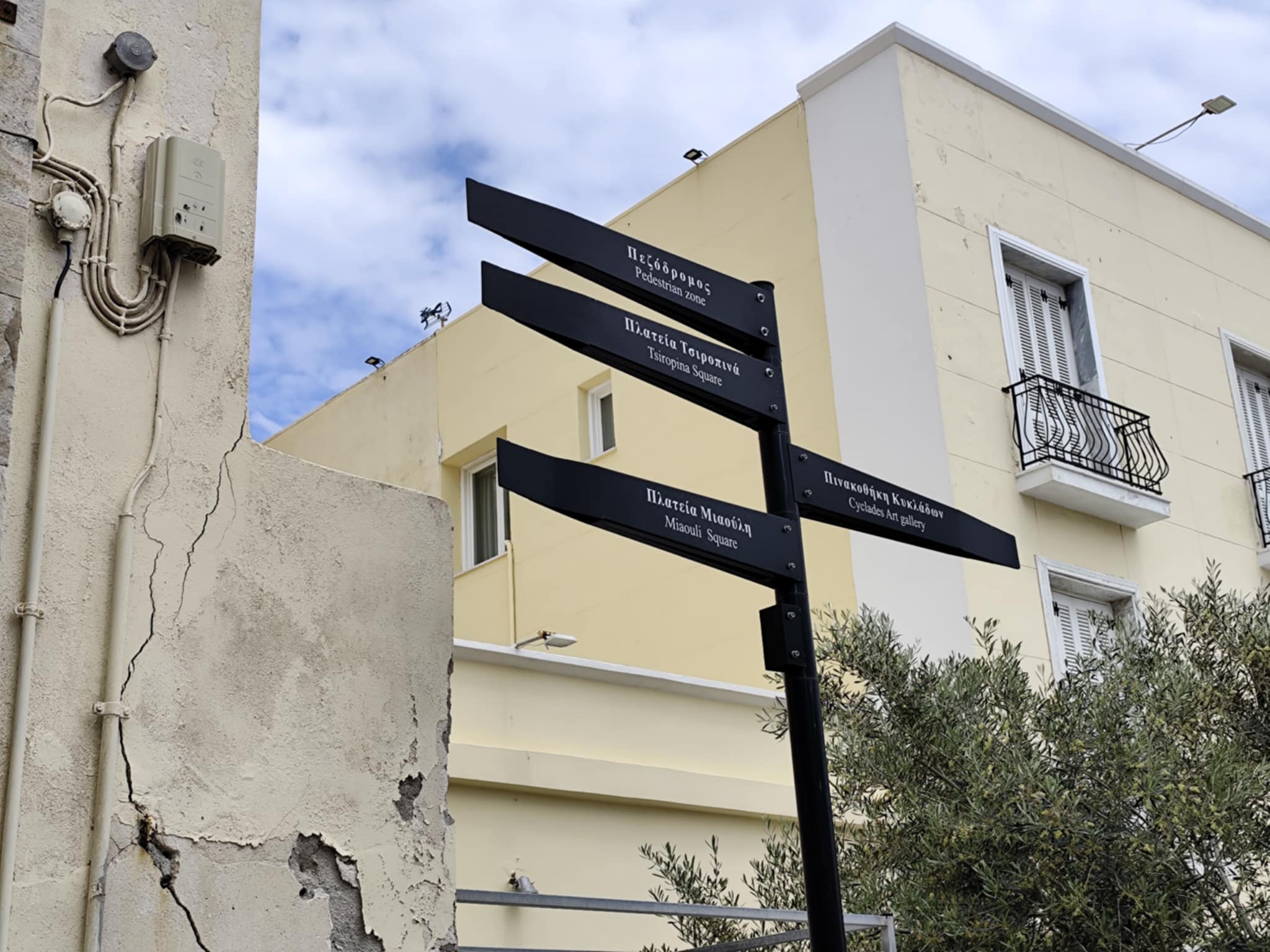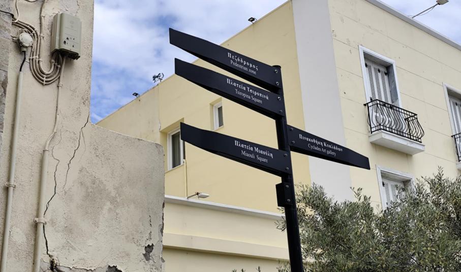 Συμπληρώνεται ο εξοπλισμός του Open Mall στην Ερμούπολη της Σύρου, για την ενίσχυση της εμπορικής ταυτότητάς της, ώστε να τονωθεί σταδιακά η αγορά και οι εισερχόμενοι στον κεντρικό πεζόδρομο να λαμβάνουν χρήσιμη πληροφόρηση για τη λειτουργία των καταστημάτων και τις προσφορές τους.