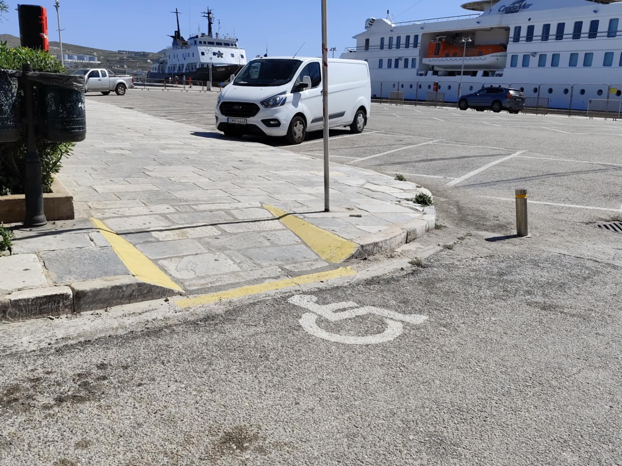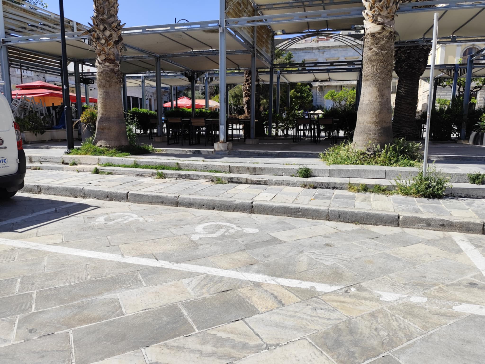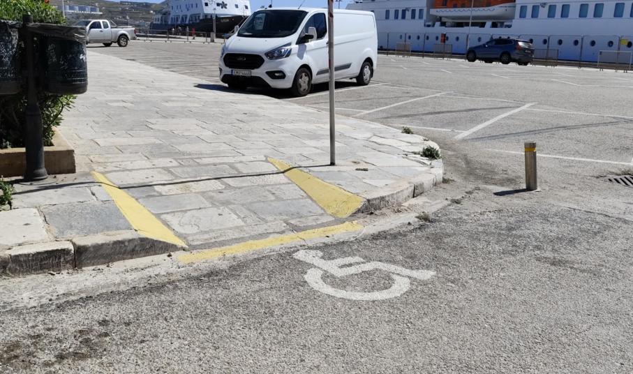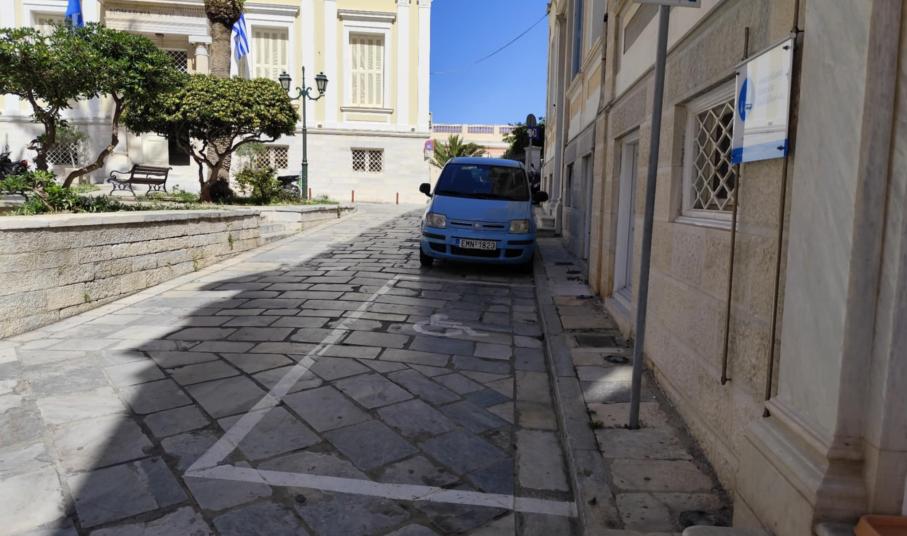 Ειδικότερα, οι προσδιορισμένοι χώροι στάθμευσης σε αρκετά σημεία του ιστορικού κέντρου έχουν αποχρωματιστεί, με αποτέλεσμα να μη διακρίνονται από μακριά οι θέσεις για τα οχήματα των ΑΜΕΑ. Ενδεικτικά, ο Δήμος Σύρου – Ερμούπολης πρέπει να φροντίσει ώστε να διακρίνονται οι δύο θέσεις στην πλατεία Μιαούλη, καθώς επίσης, ο χώρος απέναντι από την είσοδο του ναού του Αγίου Νικολάου, όπως επίσης και στην πλατεία Τσιροπινά, καθώς το σχετικό σήμα δεν φαίνεται. Ομολογουμένως, σε καλύτερη μοίρα είναι οι σχετικές θέσεις στην παραλιακή ζώνη της Ερμούπολης, με φροντίδα του Λιμενικού Ταμείου Σύρου.
