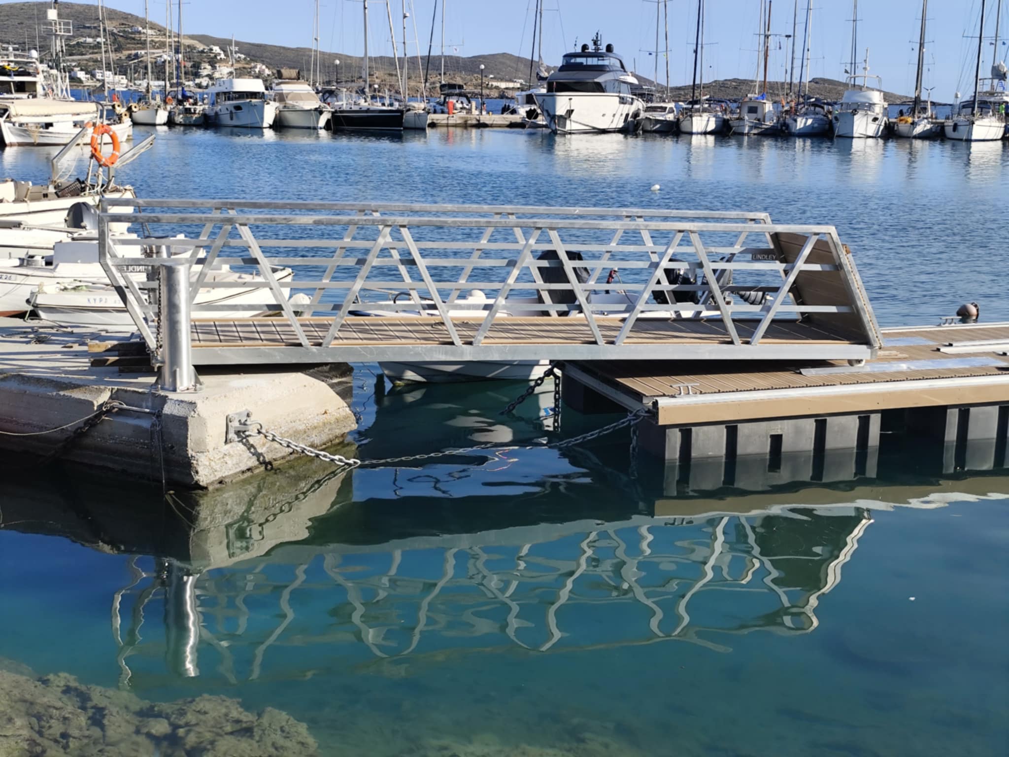 Η συγκεκριμένη εγκατάσταση – όπως πολλάκις έχει αναφέρει στο παρελθόν η “Κοινή Γνώμη” - προέρχεται από δωρεά που έκαναν ιδιώτες (Κούρτ Σβάρτς και Σαμουήλ Σάμις Δαυίδ) προς το Λιμενικό Ταμείο Σύρου, με αντάλλαγμα δύο θέσεις ελλιμενισμού, σταθερά για τα επόμενα 20 χρόνια. Η εν λόγω δωρεά έγινε προς την προηγούμενη διοίκηση με πρόεδρο την Κανδιώ Μαραγκού και σε συνέχεια ενεργειών της για απόκτηση πλωτών εξεδρών, με φόντο την μεγάλη ζήτηση για προσέγγιση σκαφών και ιστιοπλοϊκών. Ωστόσο, η εγκατάστασή τους, για πρώτη χρονιά γίνεται φέτος το καλοκαίρι, μετά από τη θετική στάση που έχει δείξει και ο νυν πρόεδρος του Λιμενικού Ταμείου Σύρου, Κώστας Γαβιώτης.