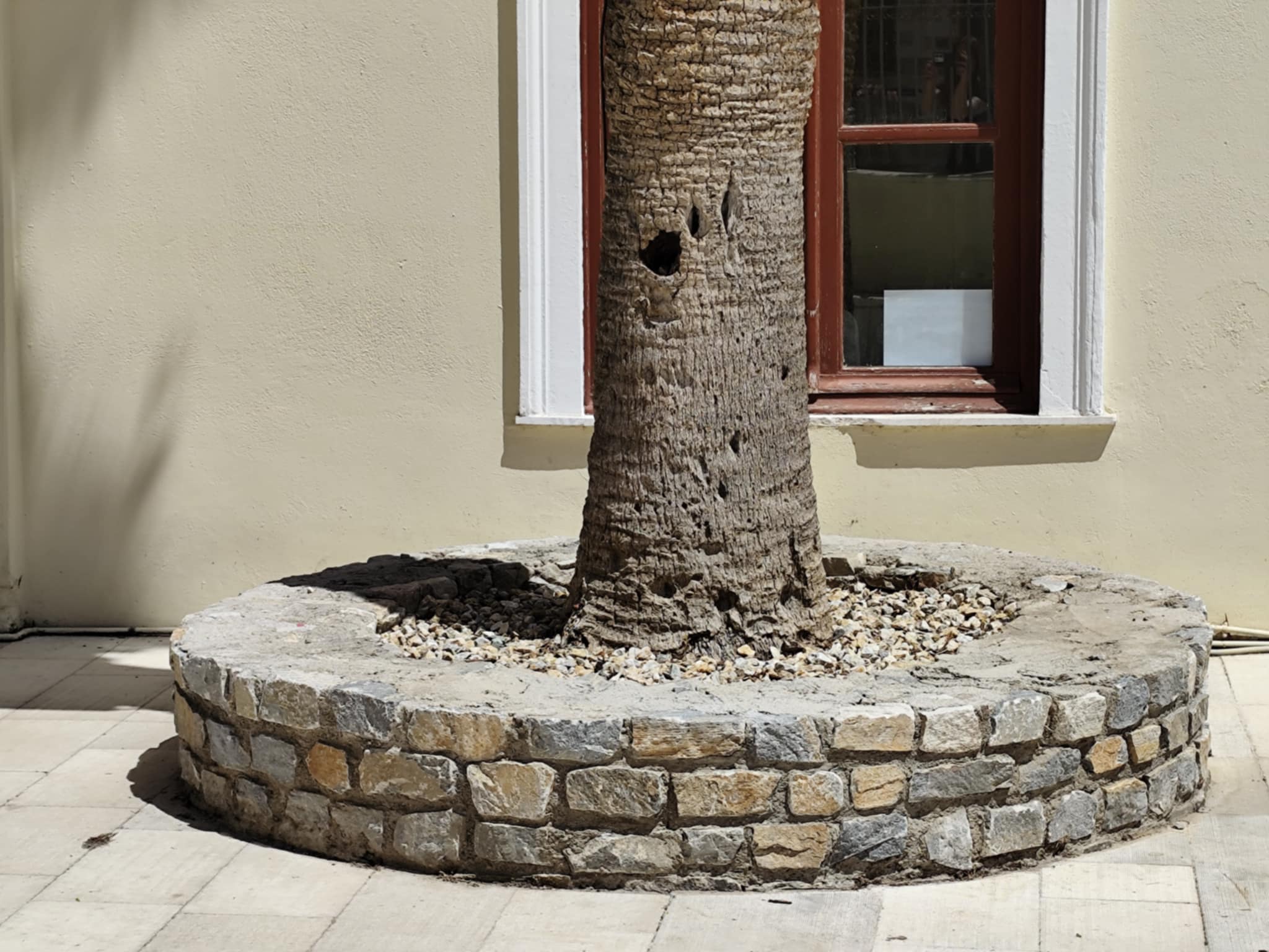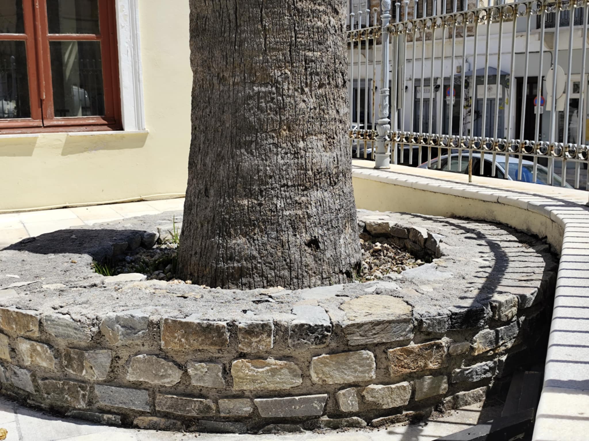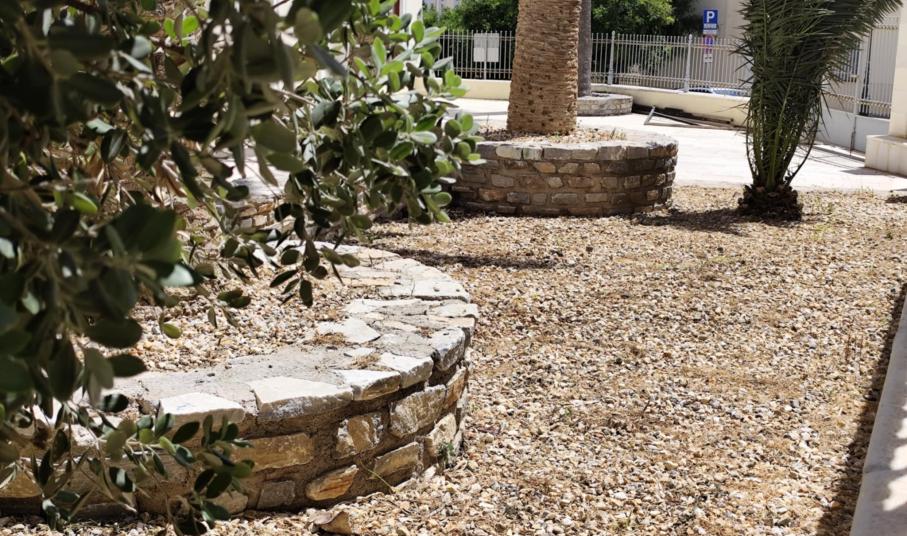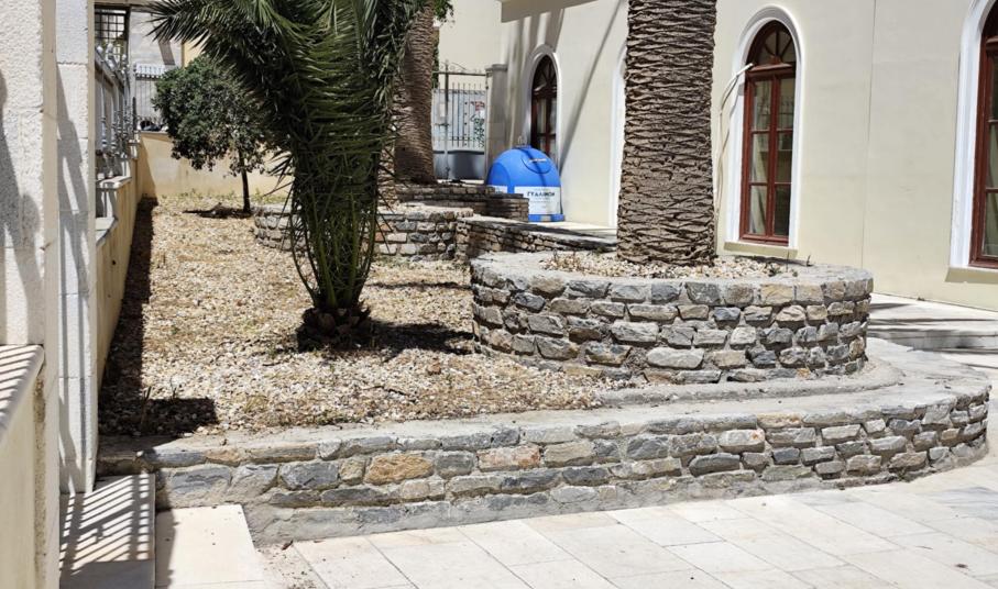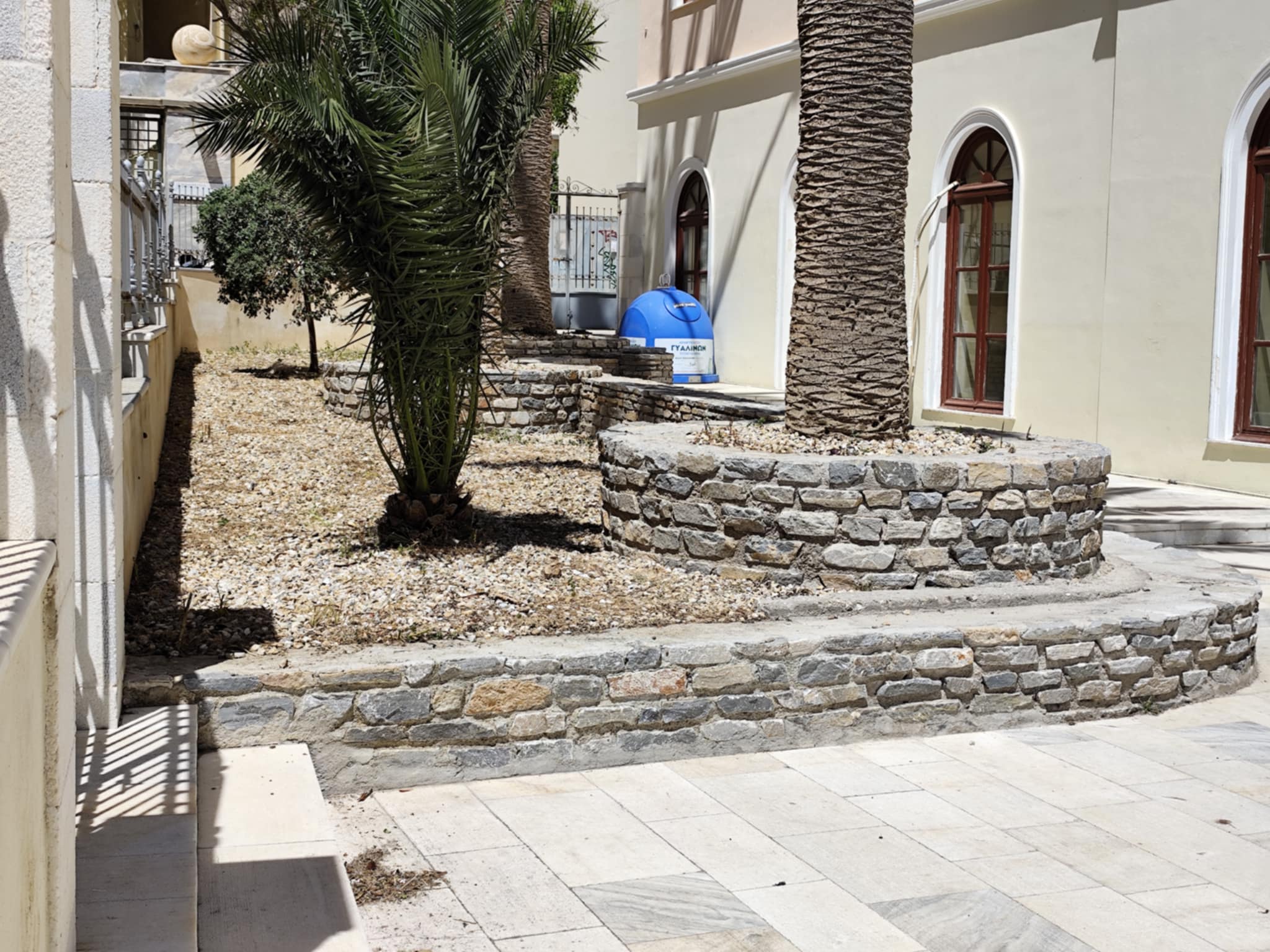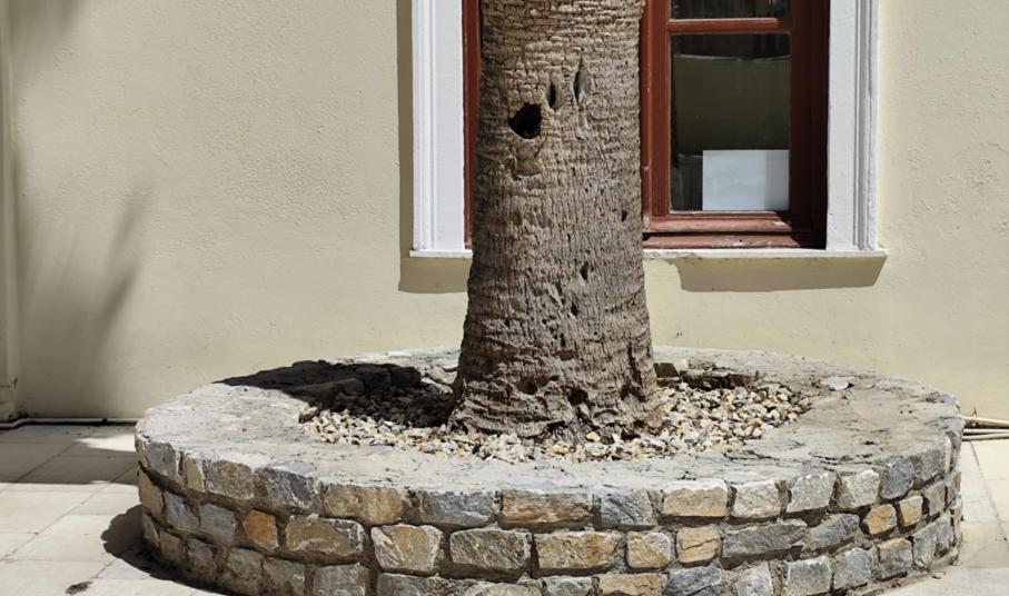 Συγκεκριμένα, μέχρι προχθές, τα παρτέρια ήταν γεμάτα χόρτα και τα πετρόχτιστα σημεία που φιλοξενούν τους φοίνικες ήταν ακαθάριστα, με αποτέλεσμα η εικόνα της εξωτερικής αυλής του να έχει σχολιαστεί αρνητικά στα μέσα κοινωνικής δικτύωσης.