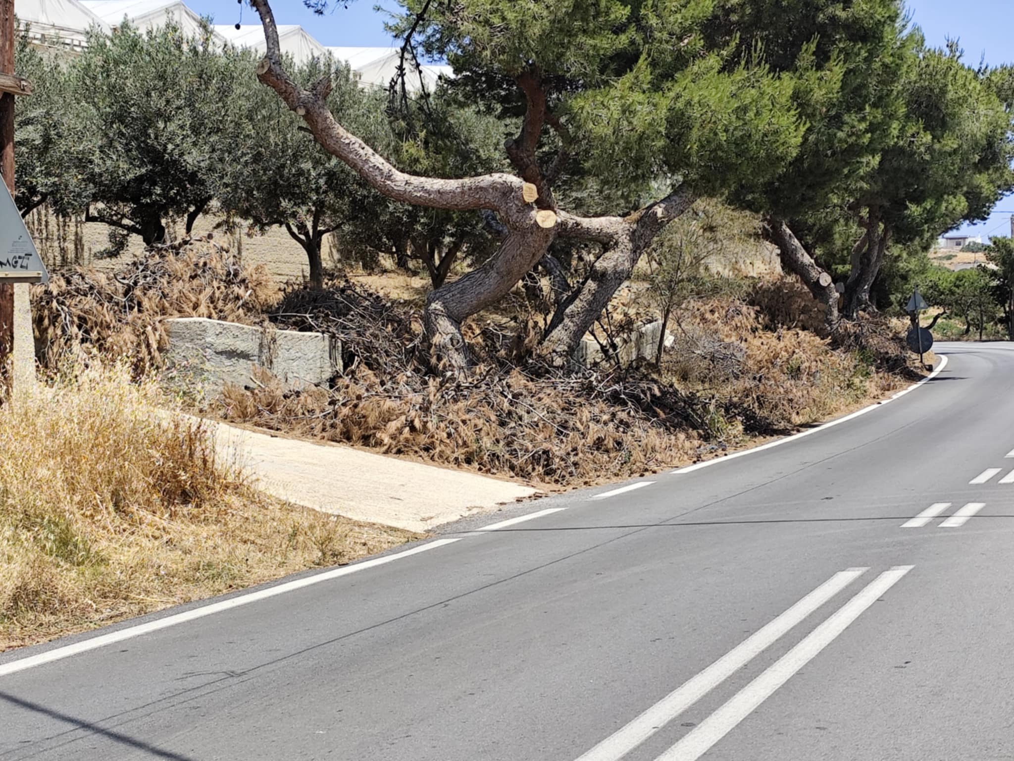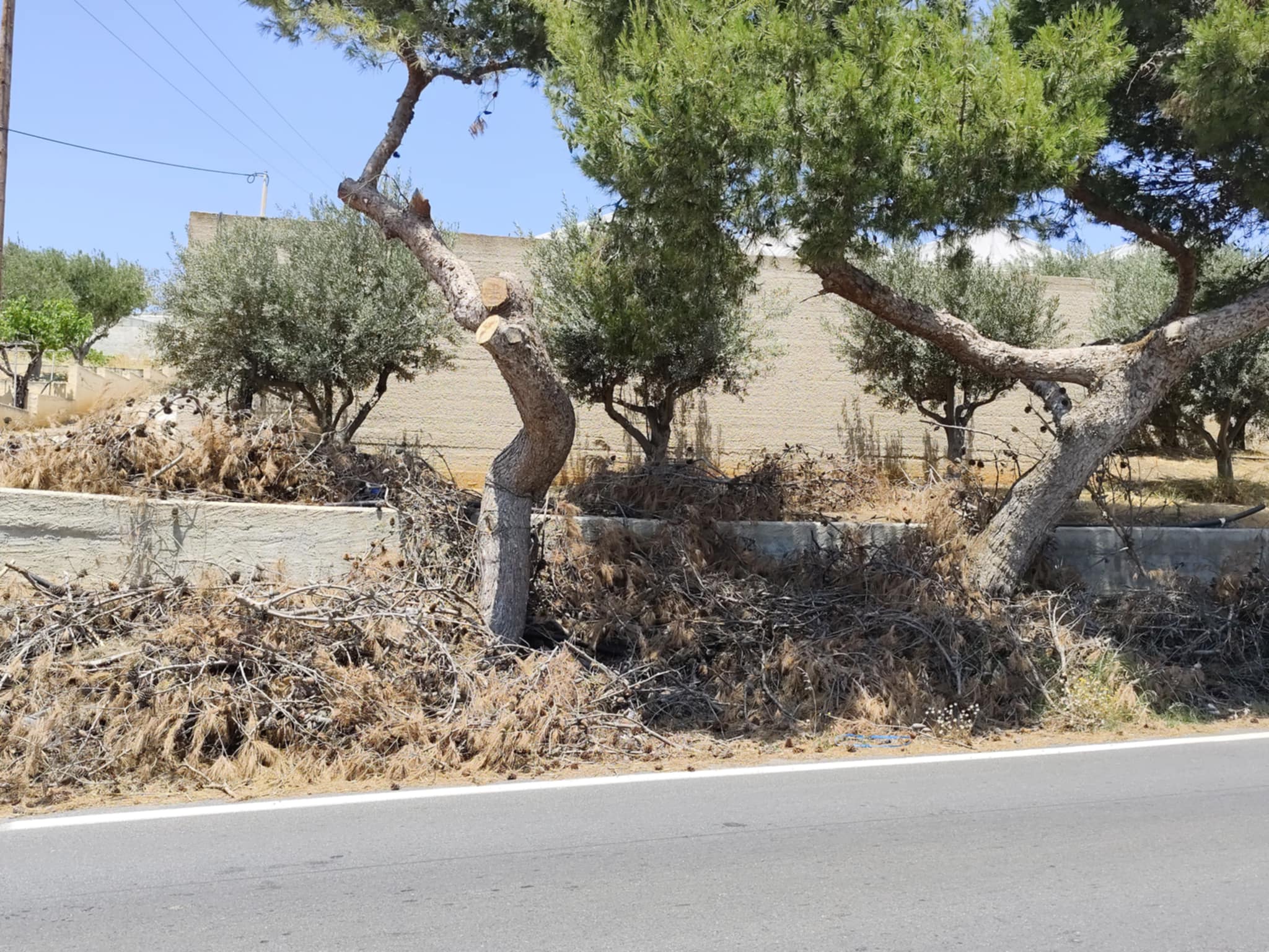 Αλγεινή εντύπωση προκαλεί το γεγονός πως κλαδεύτηκαν πεύκα και δέντρα στον δρόμο της Βάρης και τα ξερά τμήματά τους έχουν αφεθεί και παραμένουν στο περιθώριο του επαρχιακού οδικού δικτύου εδώ και αρκετές ημέρες, παρόλο που ο κίνδυνος πυρκαγιάς είναι μεγάλος.