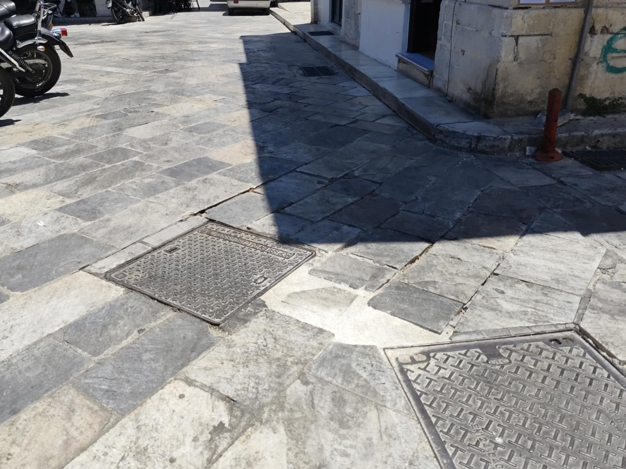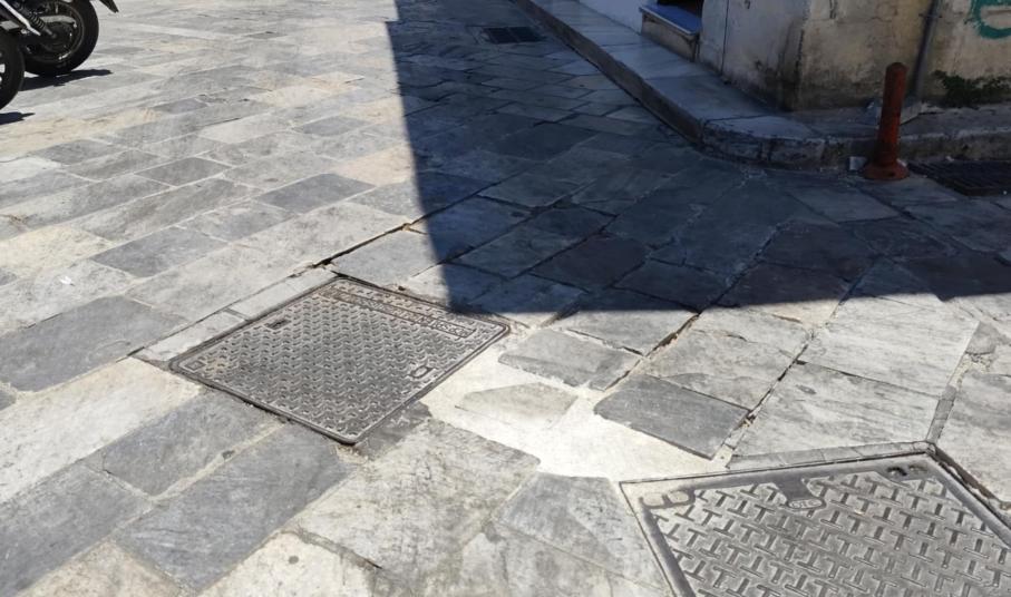 Περιμετρικά της πλατείας Μιαούλη, όπου προσφάτως δημότισσα έχασε την ισορροπία της και τραυματίστηκε