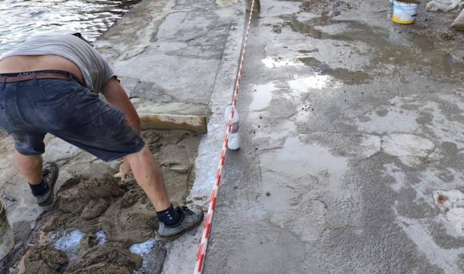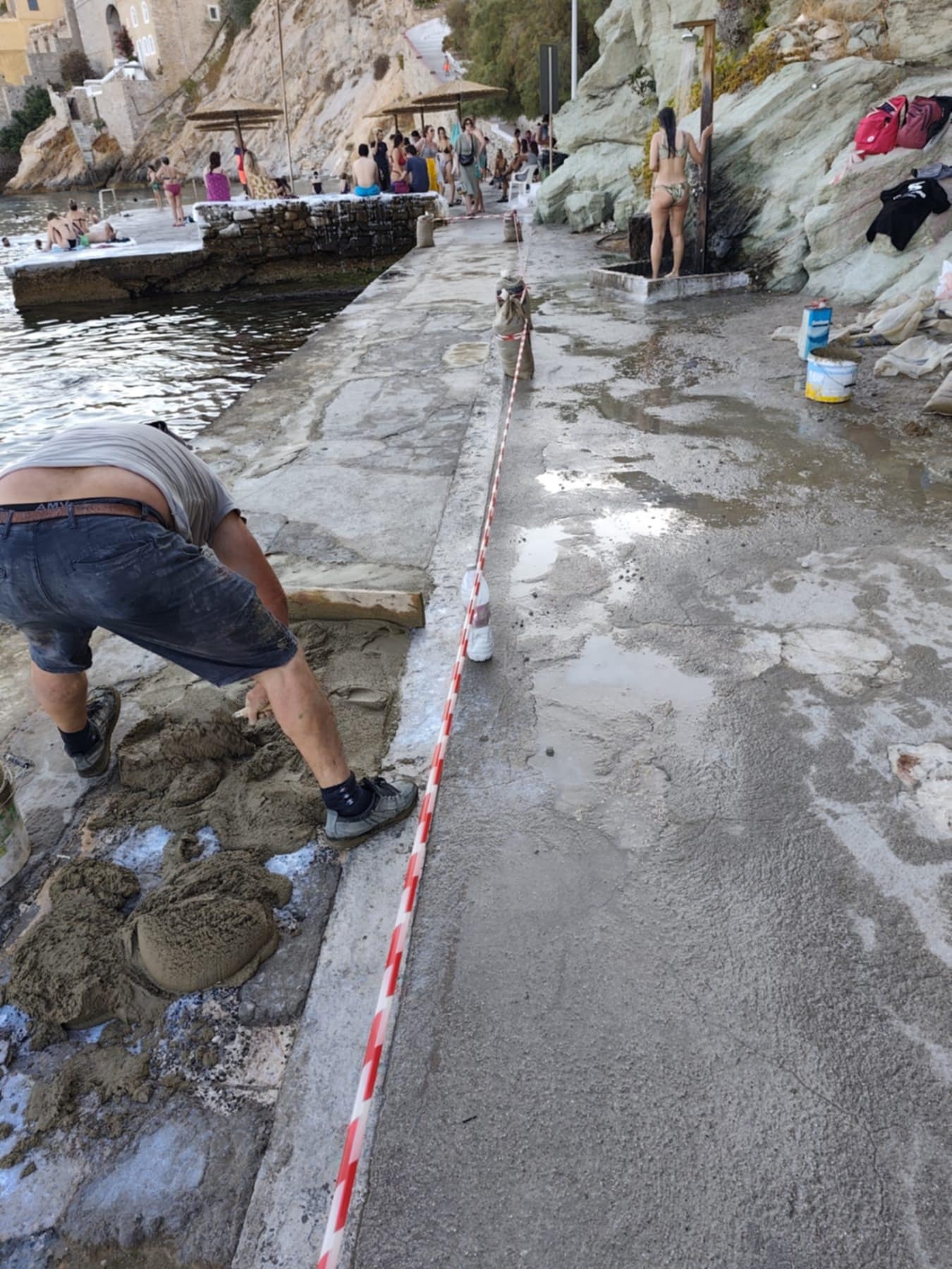 Οι πρώτες τσιμεντοστρώσεις στο χερσαίο τμήμα της περιοχής των “Αστεριών” έγιναν τις τελευταίες ημέρες, προκειμένου να καλυφθούν τμήματα που έφεραν φθορές και ήταν επικίνδυνα για τους λουόμενους.