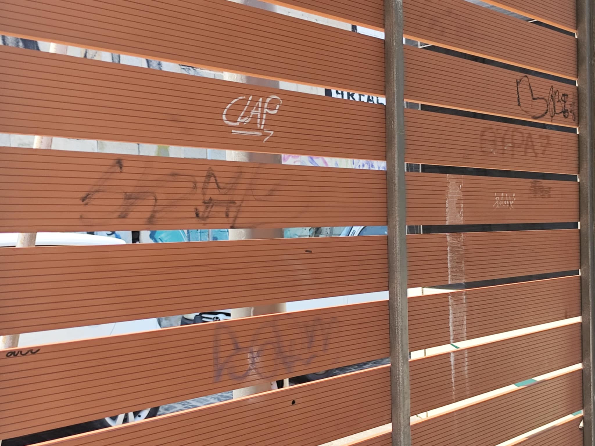 Συγκεκριμένα, το σύνολο των επιφανειών που είναι με τζάμι καθώς όμως και των ξύλινων τμημάτων της, φέρουν συνθήματα, γκράφιτι και έχουν χρωματιστεί με σπρέι, γεγονός που έχει υποβαθμίσει την εικόνα της στάσης, πάρα πολύ. Πρόκειται επί της ουσίας για φθορές σε εξοπλισμό του Δήμου Σύρου – Ερμούπολης, για τον οποίο θα πρέπει να φροντίσει η Δημοτική Αρχή, ώστε να είναι καθαρός και συντηρημένος. Επιπλέον, οι ασυνείδητοι οφείλουν να σταματήσουν την “επίθεση” με τα σπρέι, προκειμένου το σημείο, όταν καθαριστεί, να διατηρηθεί αξιοπρεπές.