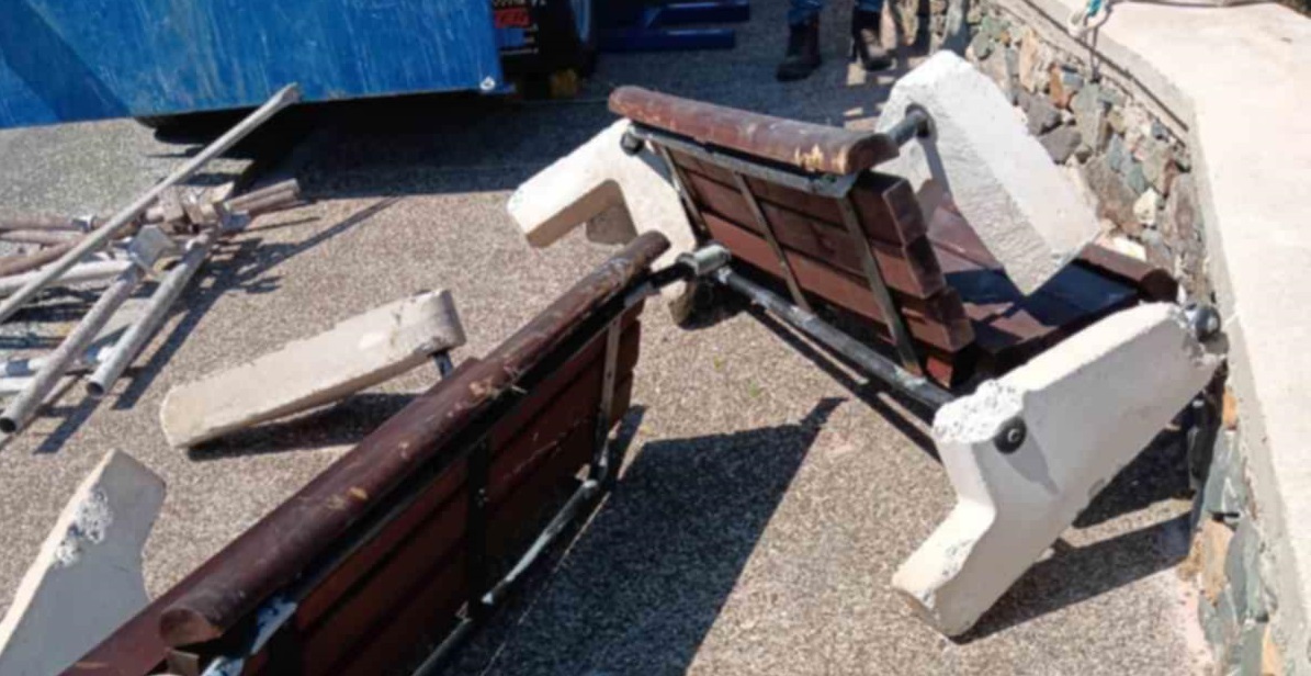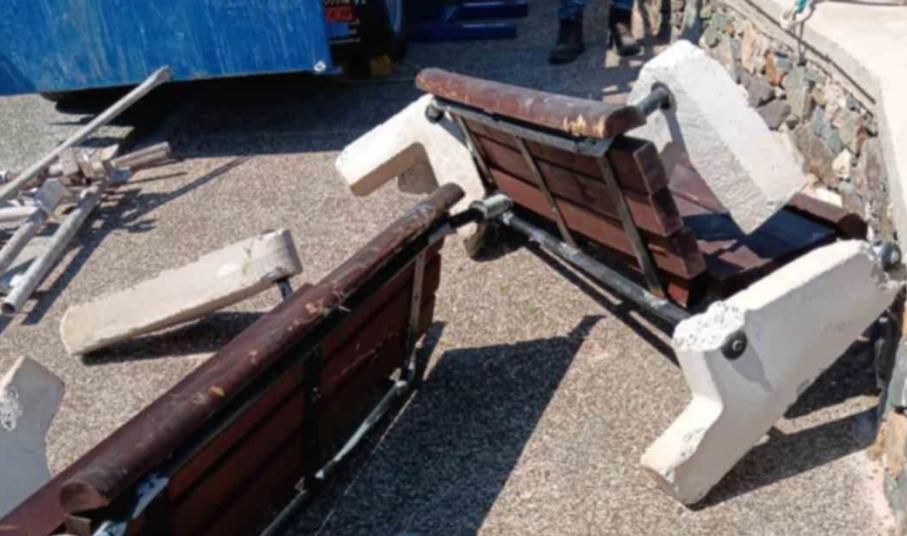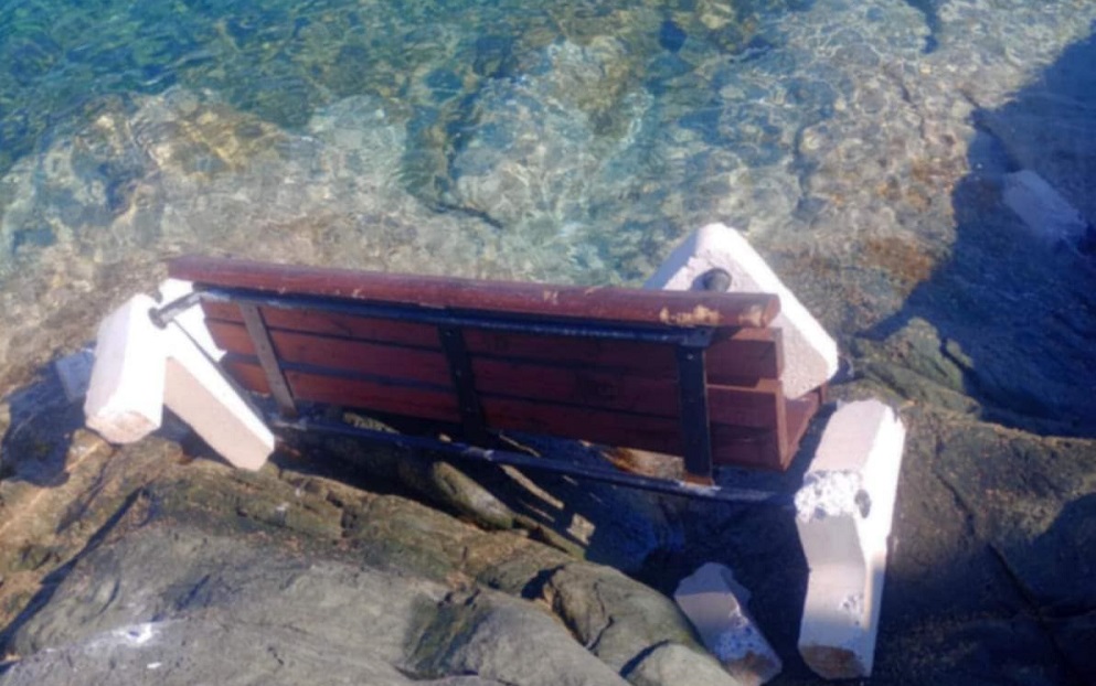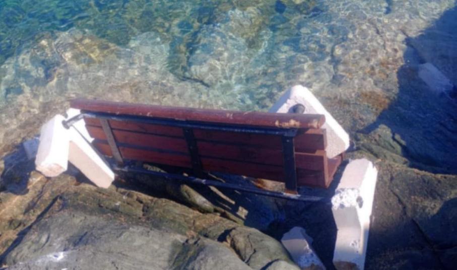 Κατεστραμμένα και πεταμένα στα βράχια, στη θαλάσσια περιοχή μεταξύ Κινίου και Λωτού, στο ύψος της περιπατητικής διαδρομής, βρέθηκαν δύο παγκάκια που είχε προμηθευτεί και τοποθετήσει το Λιμενικό Ταμείο Σύρου.