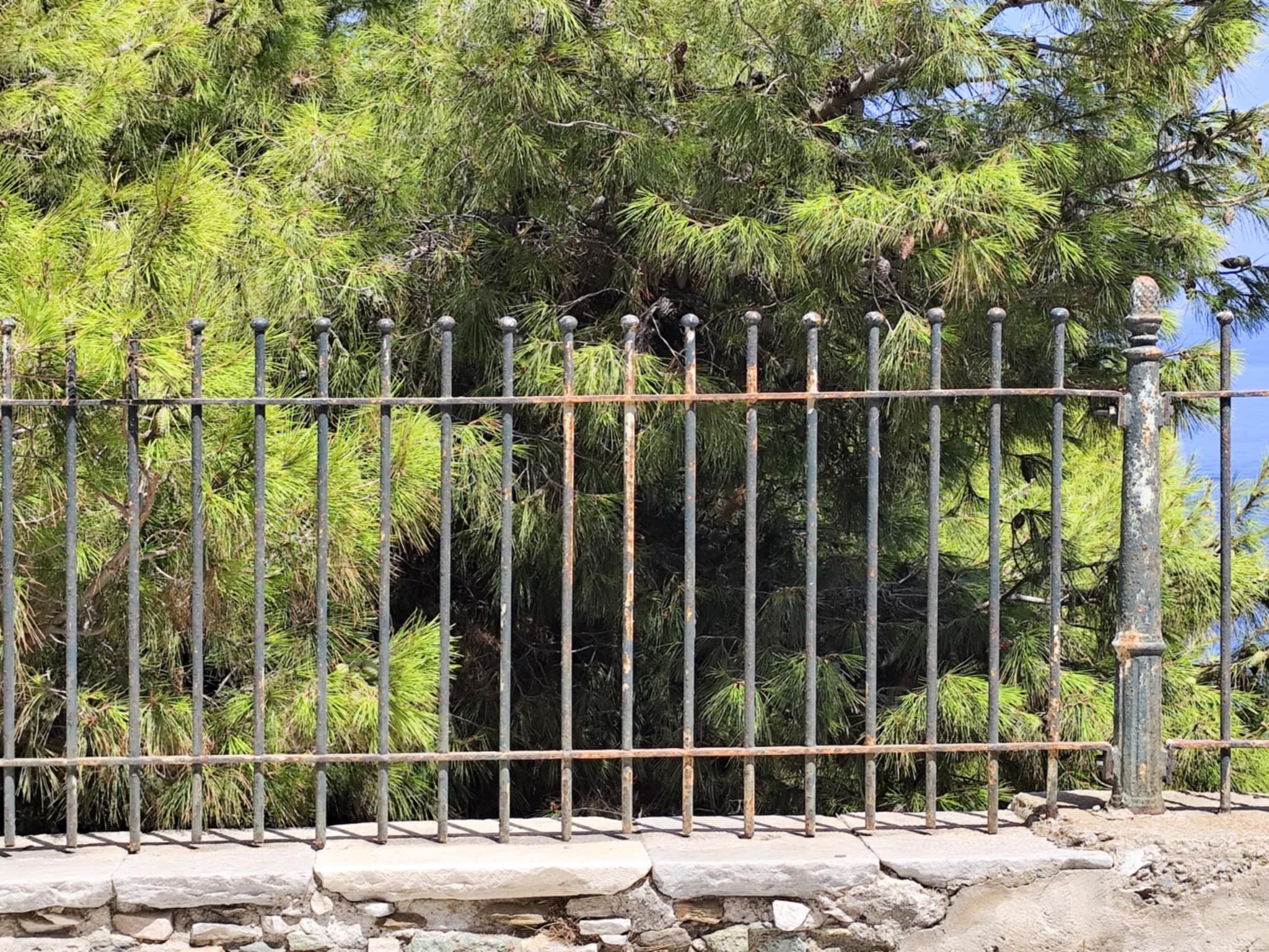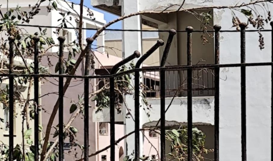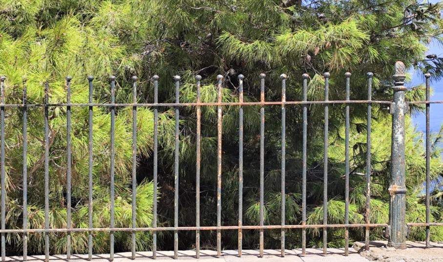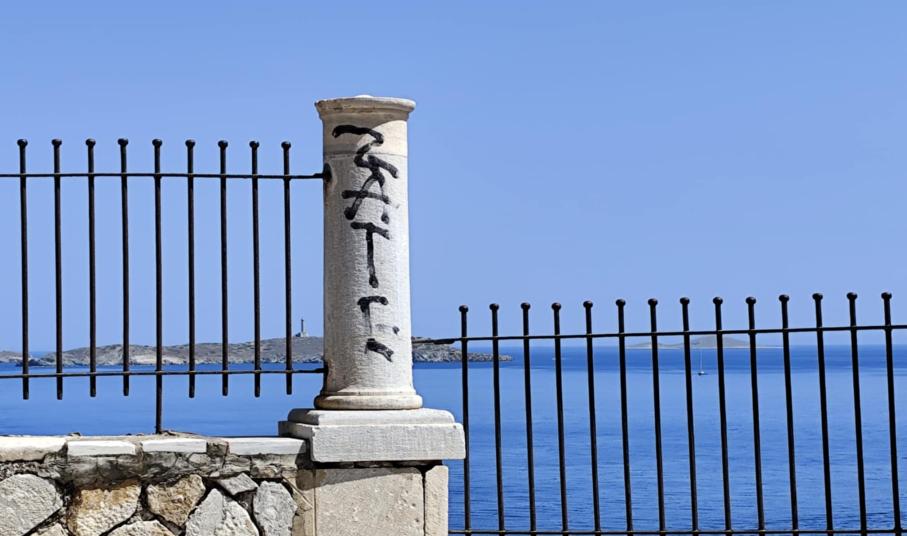 Κατεστραμμένα παραδοσιακά κάγκελα, βαμμένα μαρμάρινα κολωνάκια και φωτιστικά με μεγάλες φθορές στα Βαπόρια της Σύρου