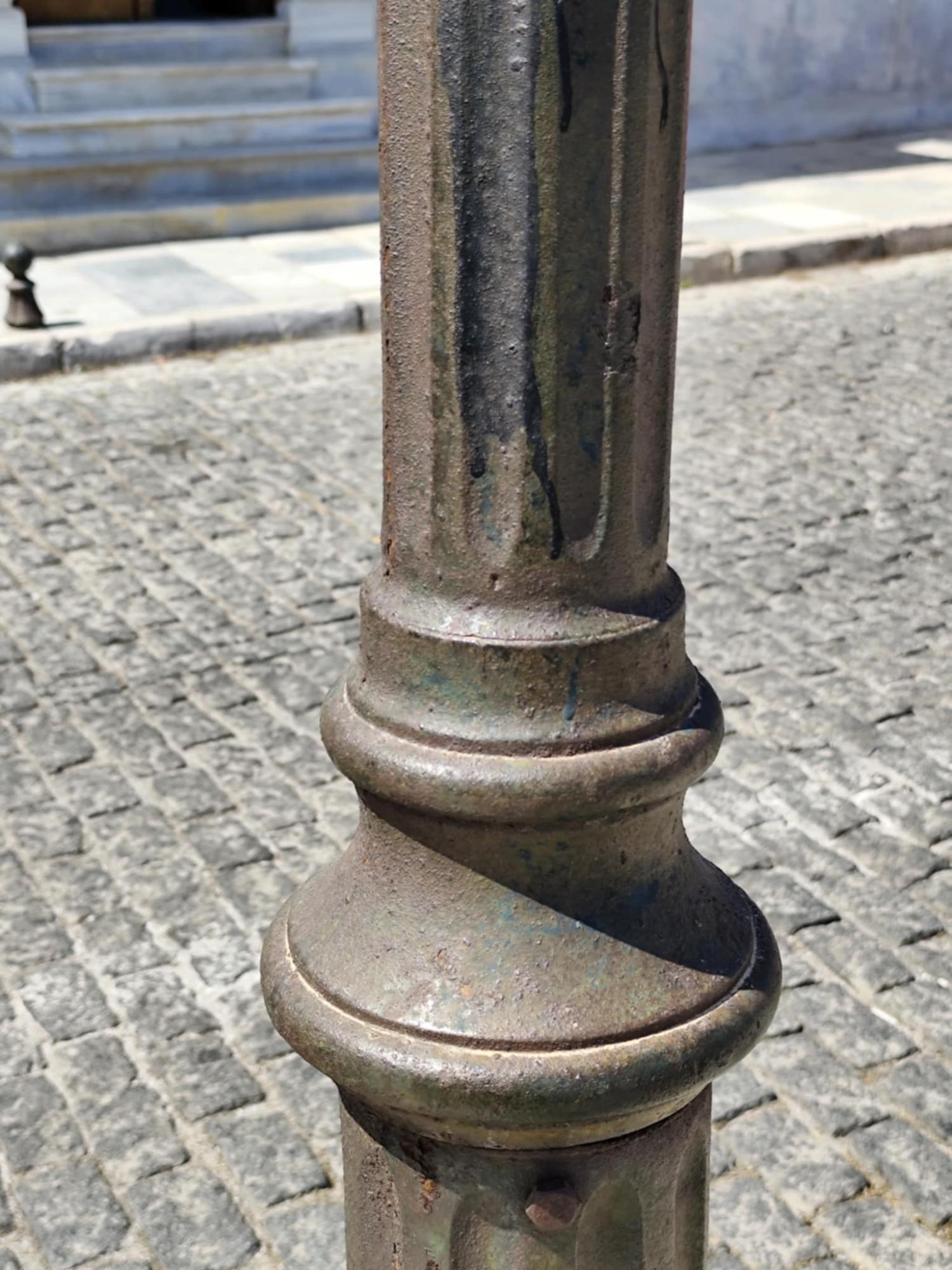 Συγκεκριμένα, ο Δήμος Σύρου – Ερμούπολης δυστυχώς, δεν έχει μεριμνήσει για συντηρήσεις στα παραδοσιακά κάγκελα, με αποτέλεσμα πολλά να είναι σκουριασμένα, να έχουν αποχρωματιστεί αλλά και να συνοδεύονται από φθορές και σπασίματα. Παράλληλα, σε κακή κατάσταση είναι τα παραδοσιακά φωτιστικά σώματα, οι βάσεις των οποίων μάλιστα είναι “πιασμένες” με ταινίες για να προστατευθεί ο εξοπλισμός που βοηθάει στο να ηλεκτροδοτούνται, ενώ ορισμένα, έχουν αποκτήσει πλέον κλίση και τείνουν να αποκολληθούν από το κάτω μέρος τους.