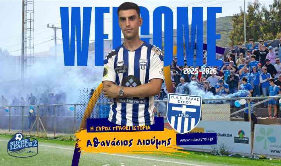 Η ΕΛΛΑΣ ΣΥΡΟΥ καλωσορίζει στην οικογένειά της τον 23χρονο σέντερ φορ Θανάση Λιούμη, ο οποίος μέχρι πρότινος αγωνιζόταν στο Διαγόρα Ρόδου