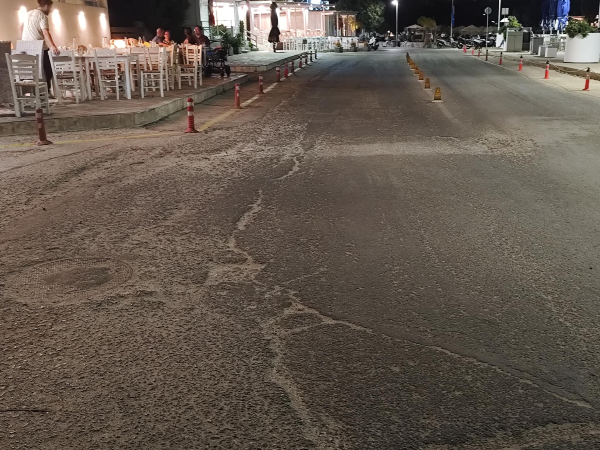 Συγκεκριμένα, υπάρχουν λακκούβες και σπασίματα στο οδόστρωμα της καθόδου που οδηγεί προς την παραλία, με αποτέλεσμα η διέλευση να μην είναι ομαλή. Τα μεγάλα προβλήματα εντοπίζονται ιδιαίτερα στην οδό Σάντου, καθώς η παλιά ασφαλτόστρωση έχει αποκολληθεί. Ανάλογης φύσης προβλήματα καταγράφονται στην παραλιακή ζώνη του χωριού και συγκεκριμένα στο ύψος των επιχειρήσεων προς την πλευρά του parking. Όπως καθίσταται σαφές, τμήματα της ασφαλτόστρωσης έχουν αποκολληθεί, με αποτέλεσμα να διαμορφωθούν λακκούβες, μέσα στις οποίες “πέφτουν” οι μηχανές. Μάλιστα, δεν είναι λίγες οι φορές που οδηγοί έχουν χάσει την ισορροπία τους.