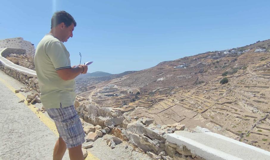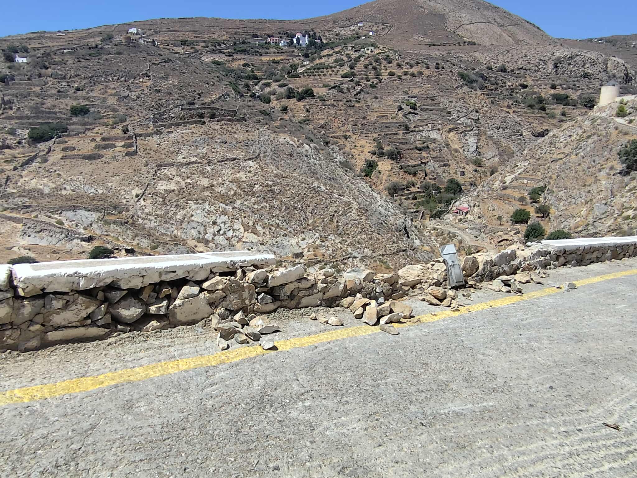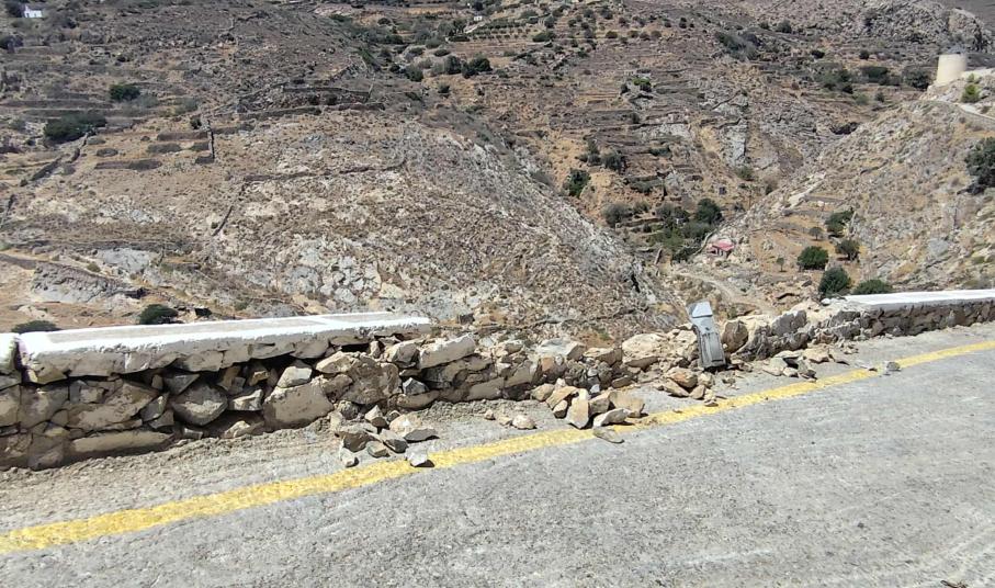 Άμεσα μέτρα για την ασφάλεια οδηγών και πεζών παίρνει ο Δήμος Σύρου - Ερμούπολης αναφορικά με την υποχώρηση τοιχίου στην πίσω είσοδο του μεσαιωνικού οικισμού, καθώς τμήμα του κατέρρευσε, μετά από πρόσκρουση οδηγού με τζιπ.