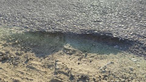 Πρόκειται για τμήμα στην κατηφόρα που οδηγεί στην παραλία, με απότομη κλίση, κατάσταση που δημιουργεί κινδύνους για ατυχήματα, αν κάποιοι οδηγοί και κυρίως δικυκλιστές χάσουν την ισορροπία τους. Ειδικότερα, όπως φαίνεται και στο φωτογραφικό υλικό της “Κοινής Γνώμης”, ένα κομμάτι ασφάλτου έχει σπάσει και έχει αποκολληθεί, με αποτέλεσμα να διαμορφωθούν μεγάλες λακκούβες. Οι έντονες ανομοιομορφίες μάλιστα, καλύπτουν λίγα μέτρα του δρόμου, γεγονός που θέτει εμπόδια στην ομαλή μετακίνηση και κυρίως αν διέρχονται οδηγοί από αντίθετες κατευθύνσεις.