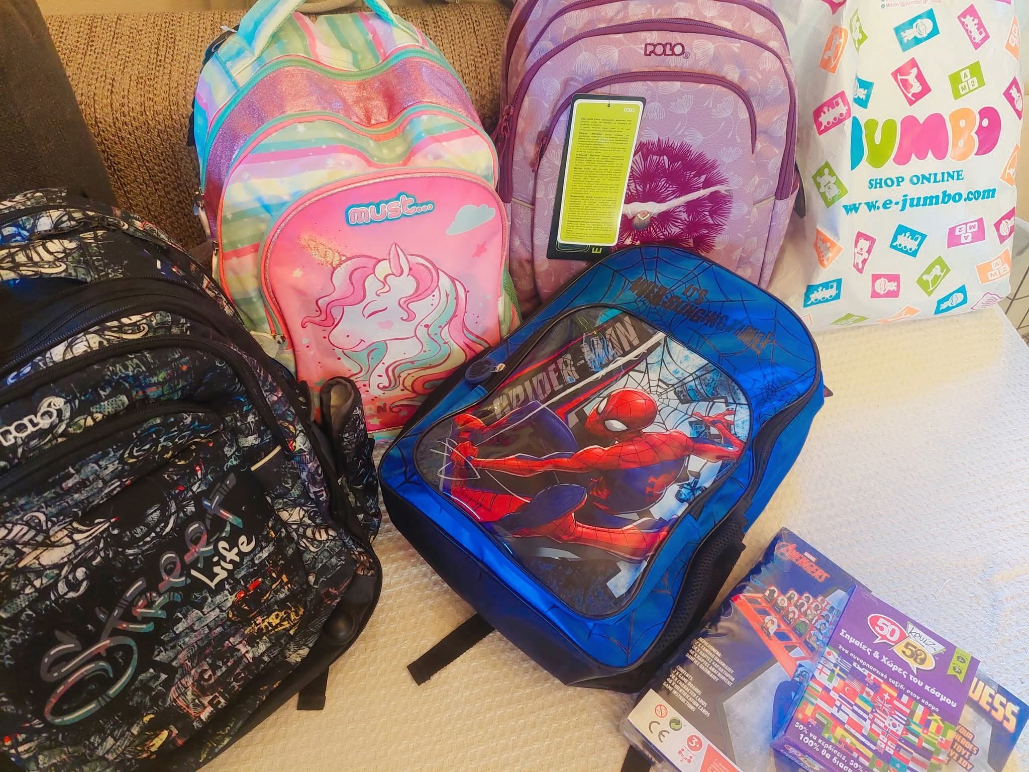 Σύνολο 34 παιδιών όλων των ηλικιών, έλαβαν και φέτος τσάντες με όλα τα απαραίτητα για τη σχολική χρονιά καθώς και ένας φοιτητής κι ένας φαντάρος.