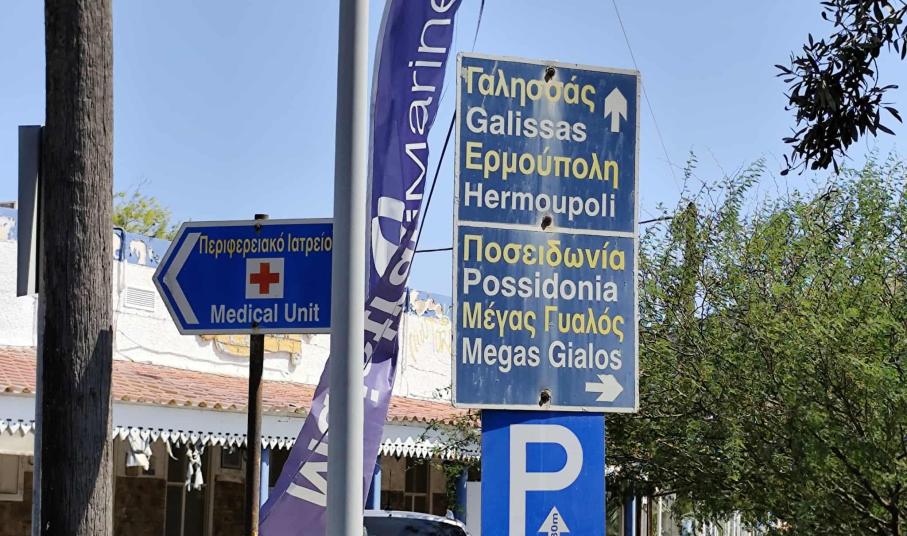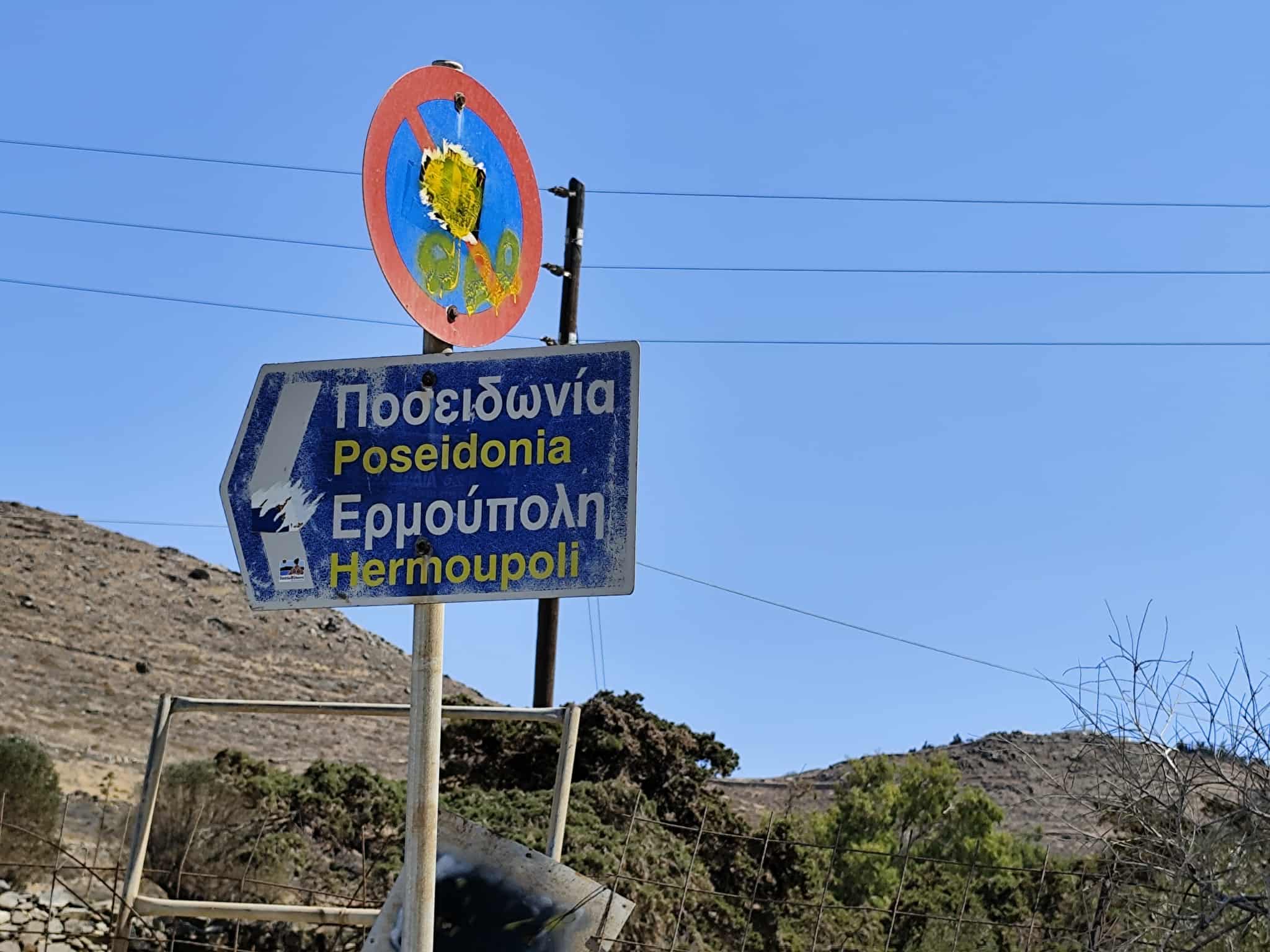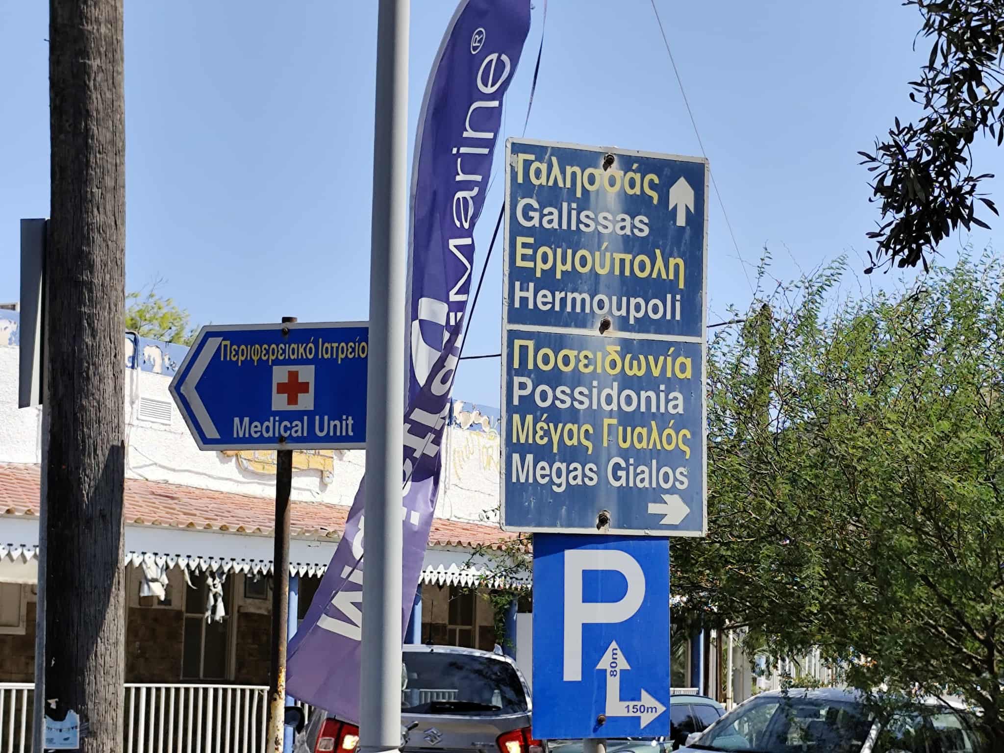 Επιπλέον, αντιαισθητικές είναι και οι πληροφοριακές πινακίδες που ενημερώνουν για τις περιοχές στο νησί και τις κατευθύνσεις που πρέπει να ακολουθήσουν οι οδηγοί, όπως ενδεικτικά φαίνεται στην είσοδο στο λιμανάκι του Φοίνικα, καθώς και στην είσοδο του δρόμου προς τον οικισμό του Γαλησσά, ενώ επίσης, σε όλο τον δρόμο που ενώνει τις παραπάνω περιοχές με την Ποσειδωνία είναι βαμμένα όλα τα σήματα του ΚΟΚ που αναγράφουν το ανώτατο όριο ταχύτητας.