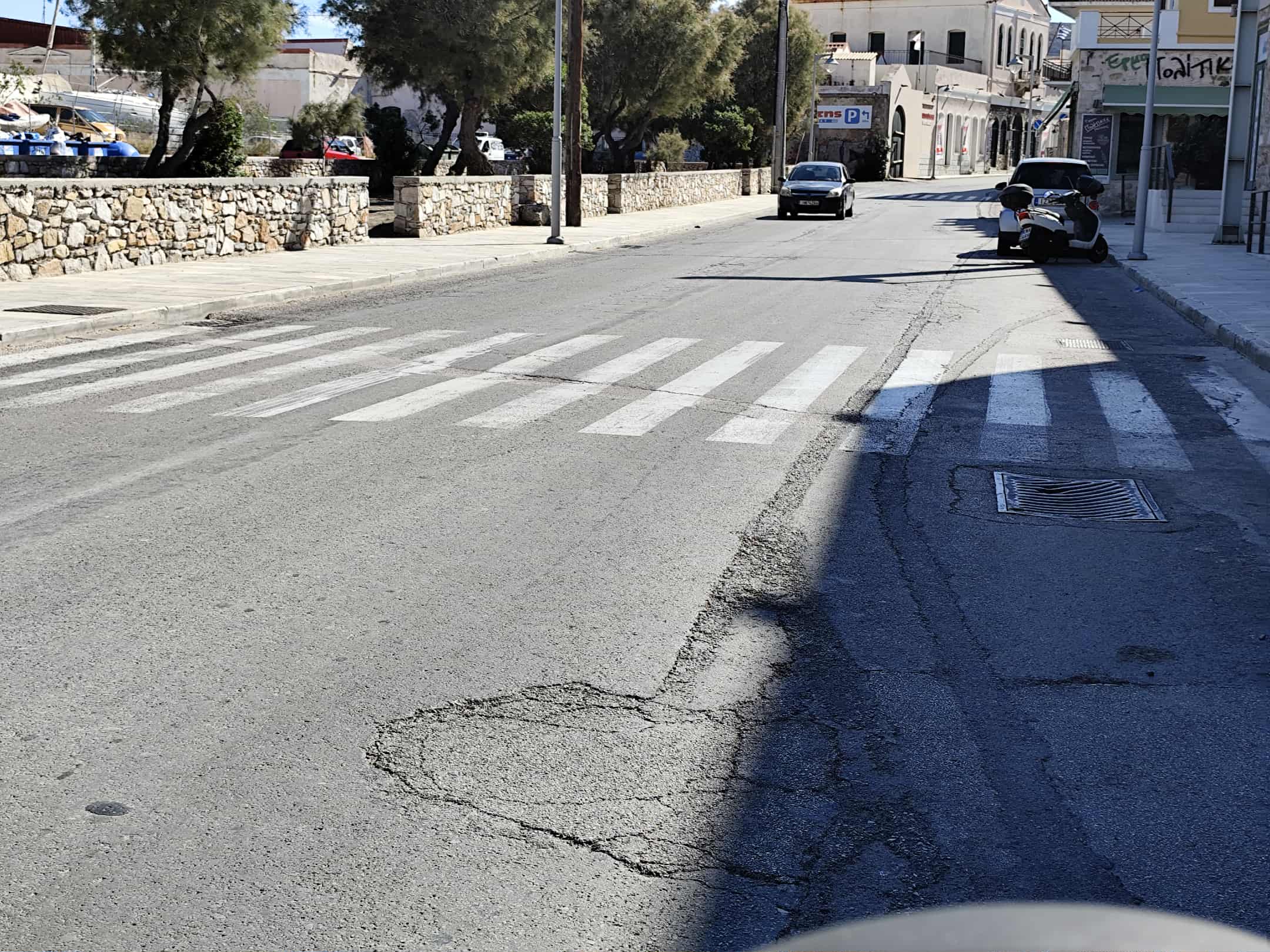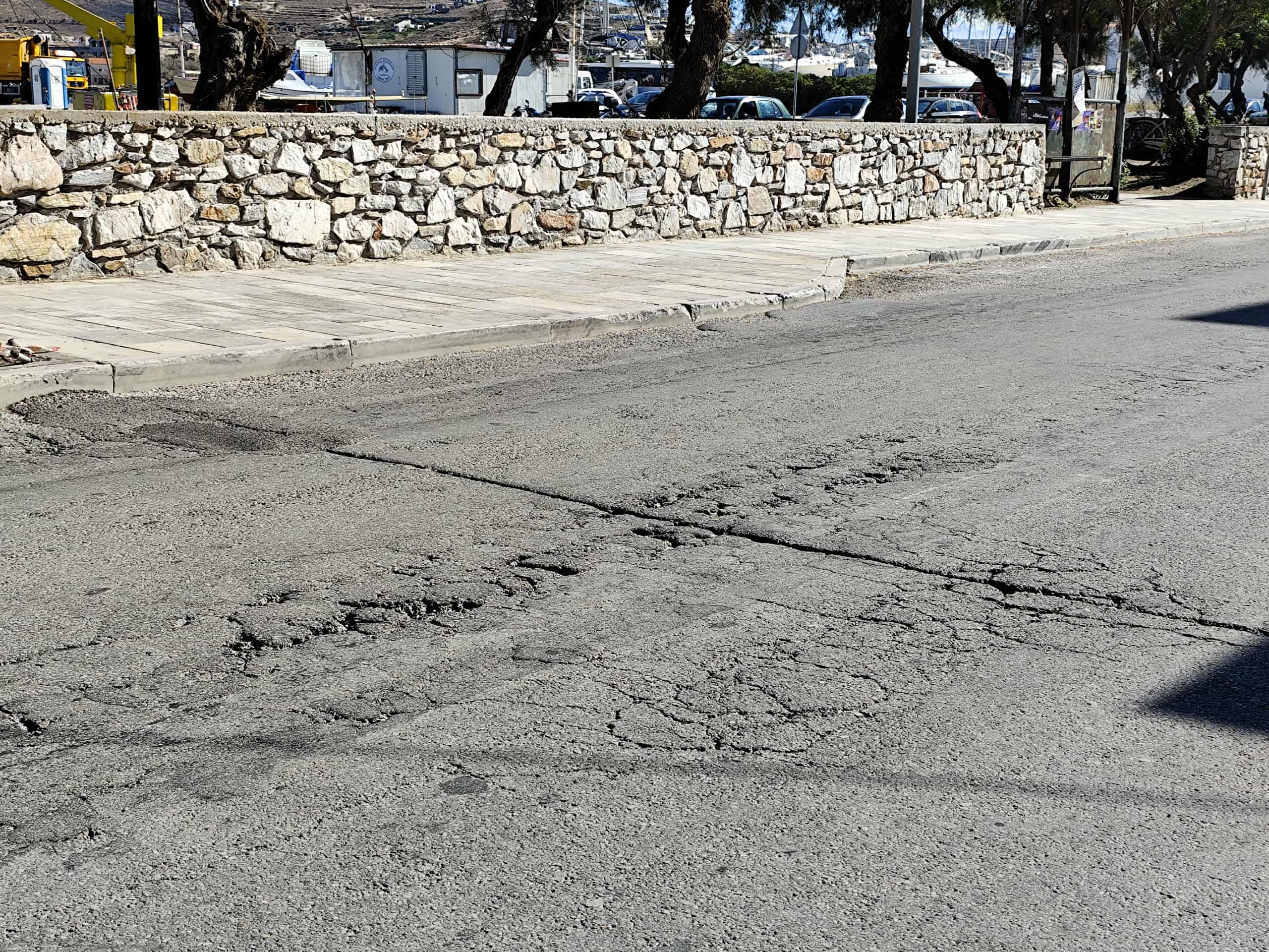 Η συνεχής ροή οχημάτων, μηχανών αλλά κυρίως μεγάλων φορτηγών με σημαντικό βάρος, λόγω της εξυπηρέτησης του μεταφορικού έργου για το νησί, από τη μοναδική κεντρική οδό που συνδέει την πόλη με τις άλλες περιοχές, έχει προκαλέσει αυτονόητα, ζημιές.