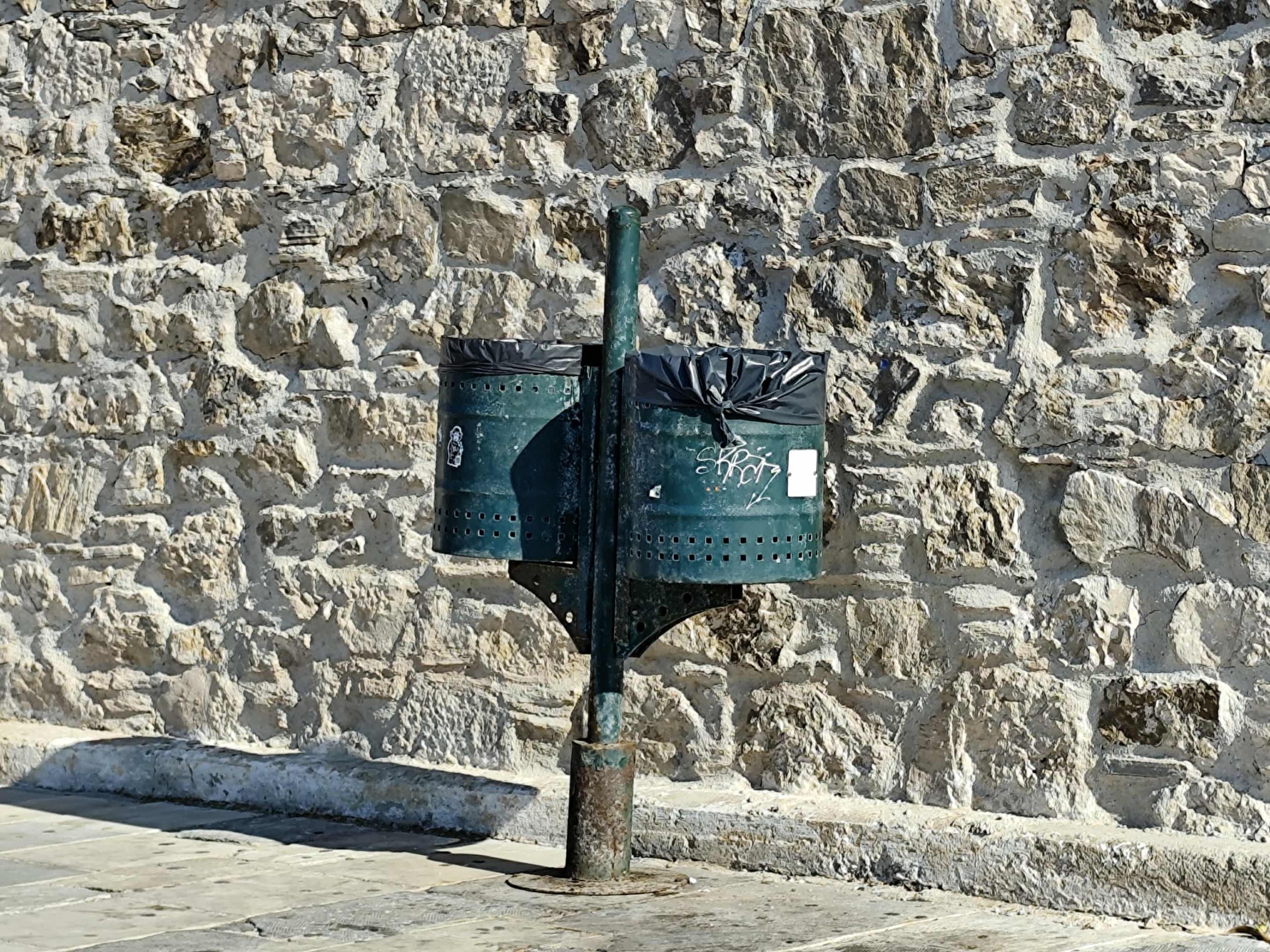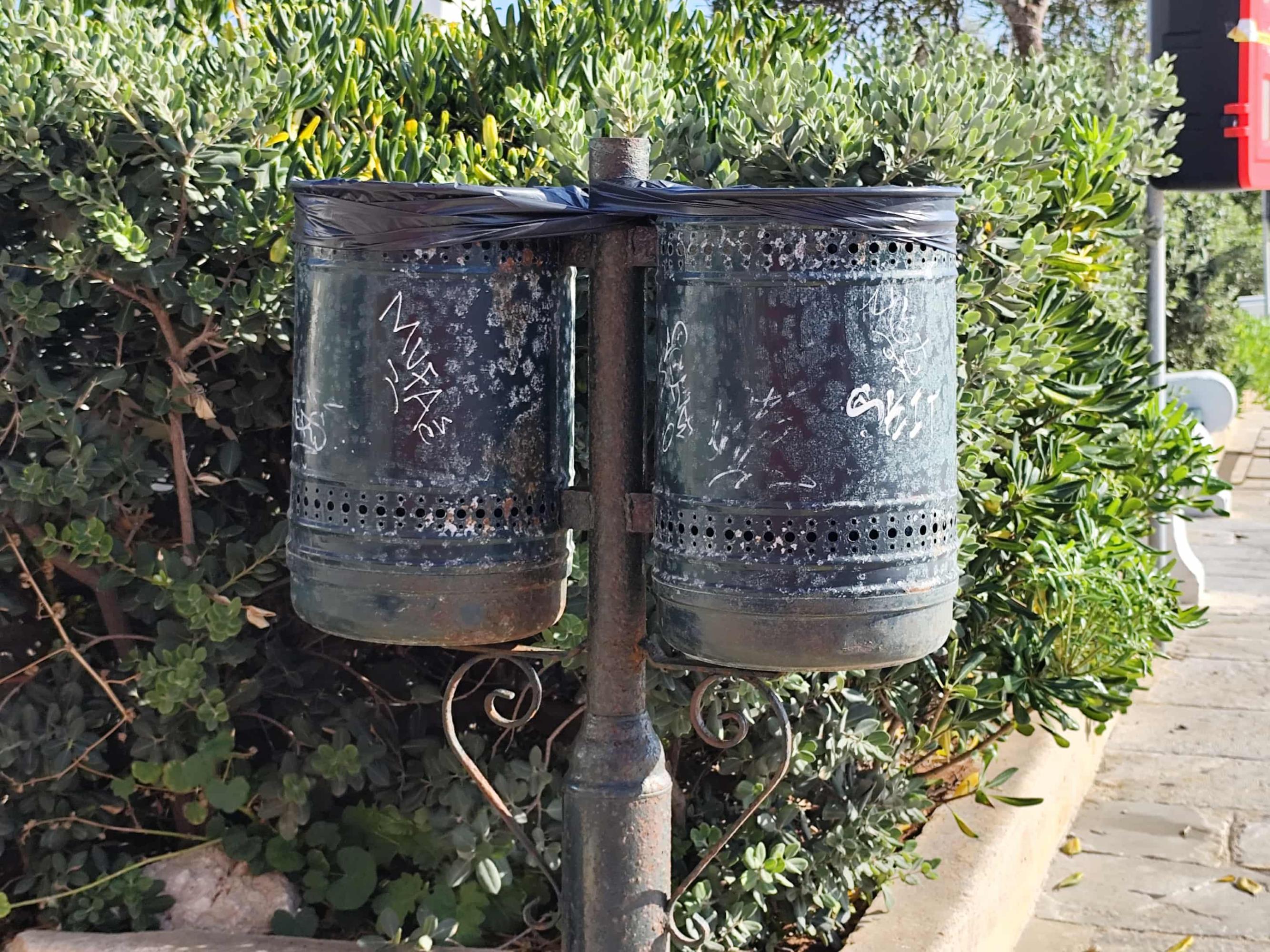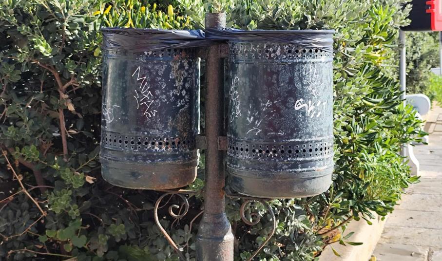 Σε κάκιστη κατάσταση παραμένουν πολλοί μικροί κάδοι απορριμμάτων σε όλο το κέντρο της Ερμούπολης, με ελάχιστες εξαιρέσεις αντικατάστασης παλαιού εξοπλισμού, με μέριμνα του Λιμενικού Ταμείου Σύρου, σε ορισμένα σημεία ευθύνης του.