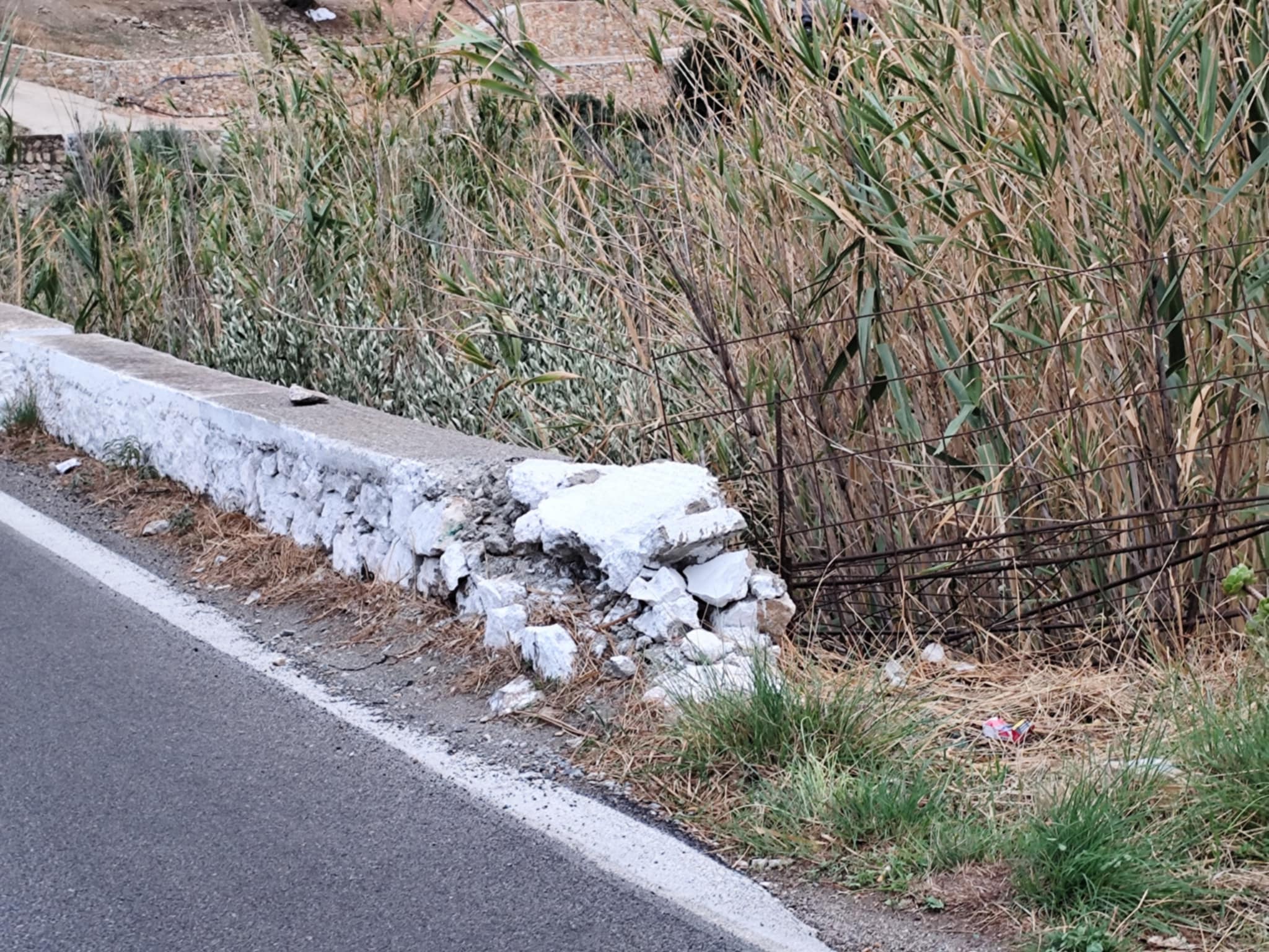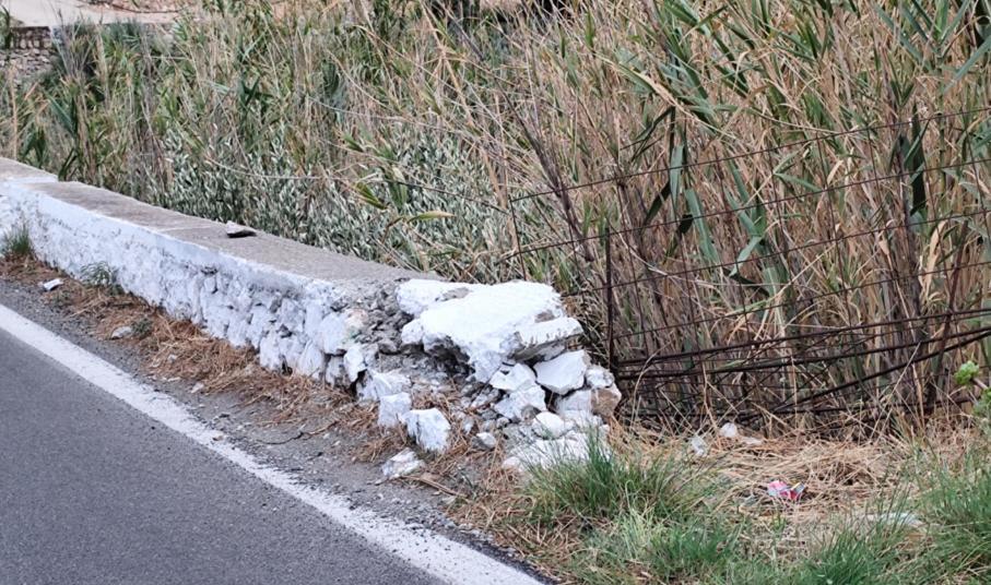 Ειδικότερα, στην είσοδό του και στο πρώτο μέρος του, έχουν υποχωρήσει πέτρες και ένα τμήμα του φαίνεται πως είναι πρόχειρα τοποθετημένο, ενώ δίπλα ακριβώς, σε κενό σημείο που παραπέμπει σε… χαντάκι για τους οδηγούς, υπάρχει χοντρό συρματόπλεγμα.