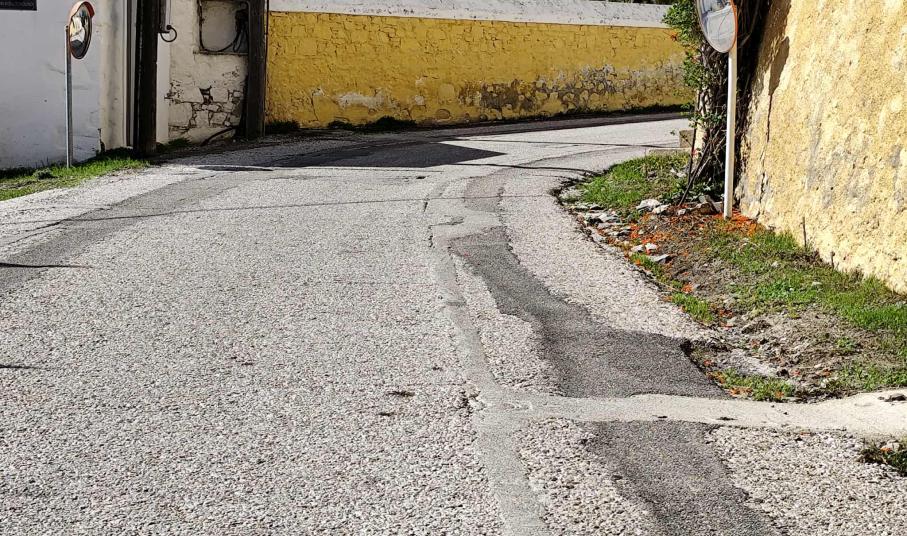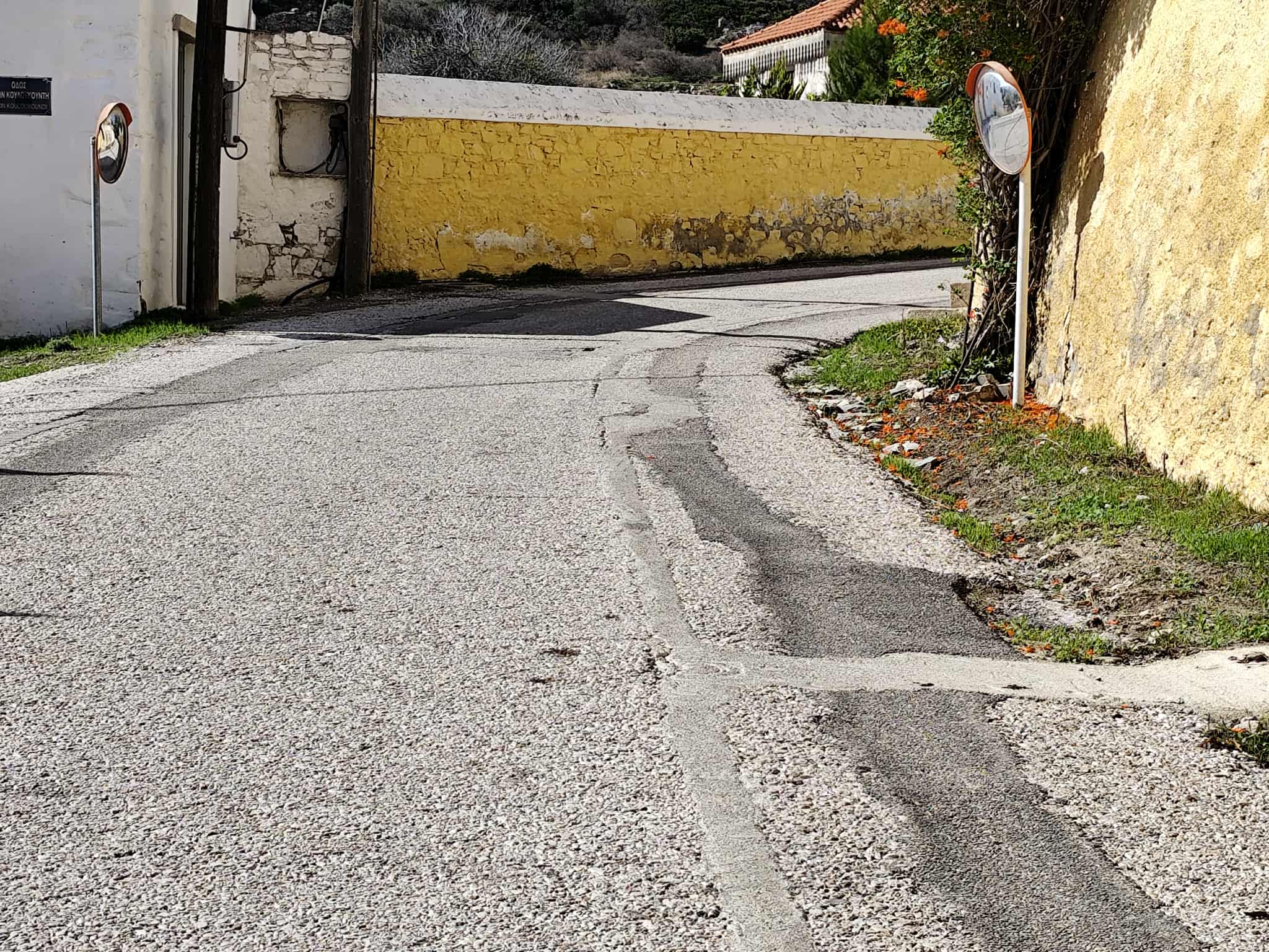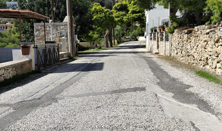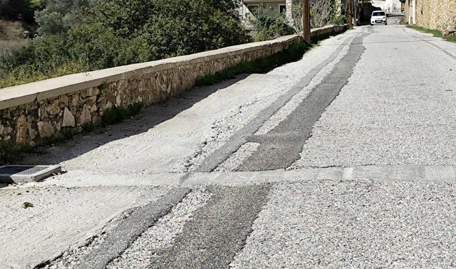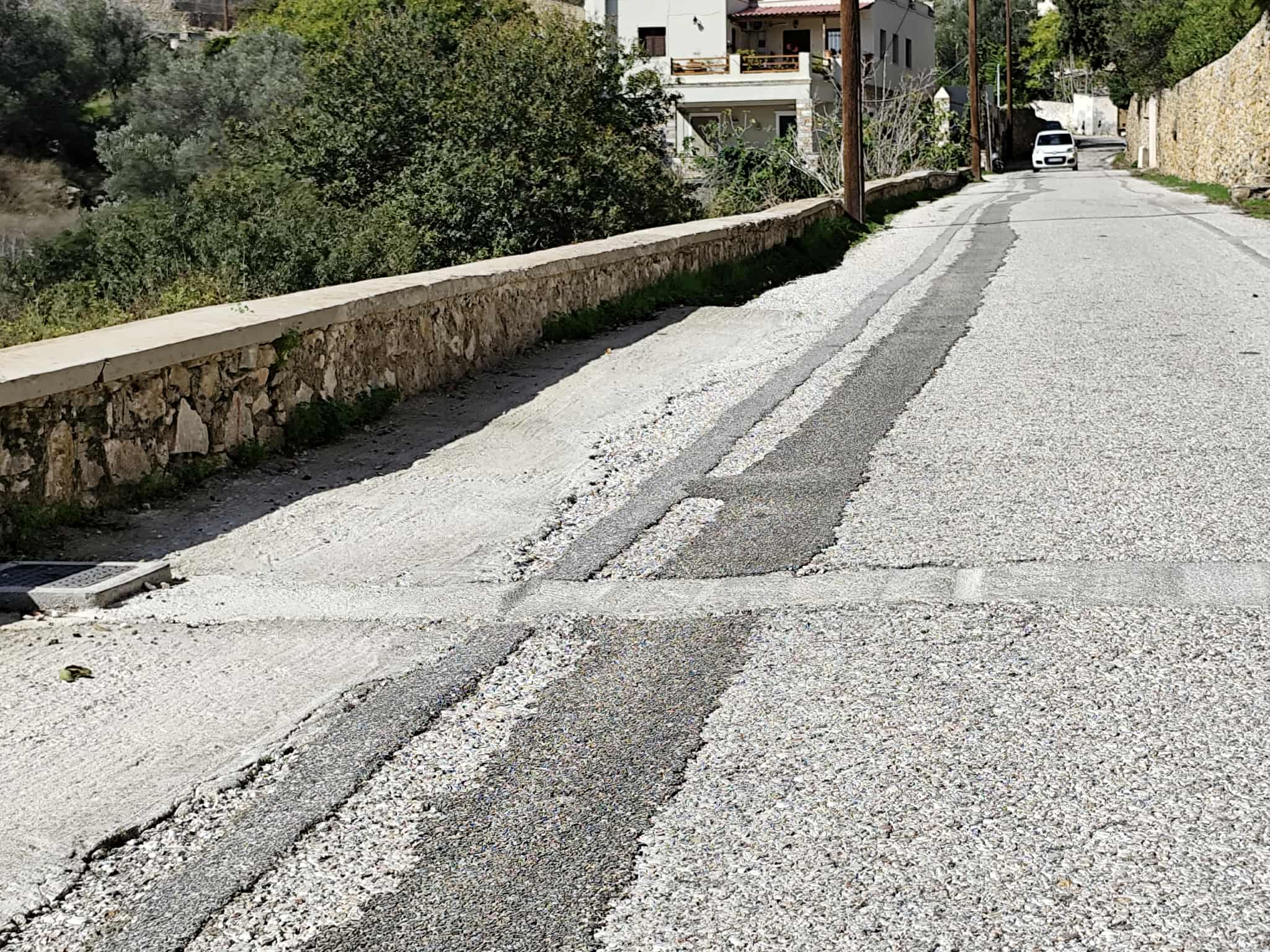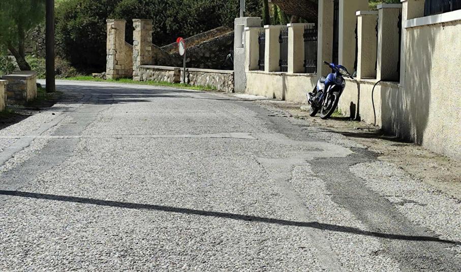 Σε όλη την έκταση του δρόμου, από την είσοδο του οικισμού και μέχρι το τέλος του, το οδόστρωμα έχει υποβαθμιστεί σημαντικά, καθώς έχει γεμίσει αυλάκια, χαντάκια αλλά και μπαλώματα, διαμορφώνοντας ουσιαστικά μη ασφαλείς συνθήκες για δικυκλιστές και πεζούς.