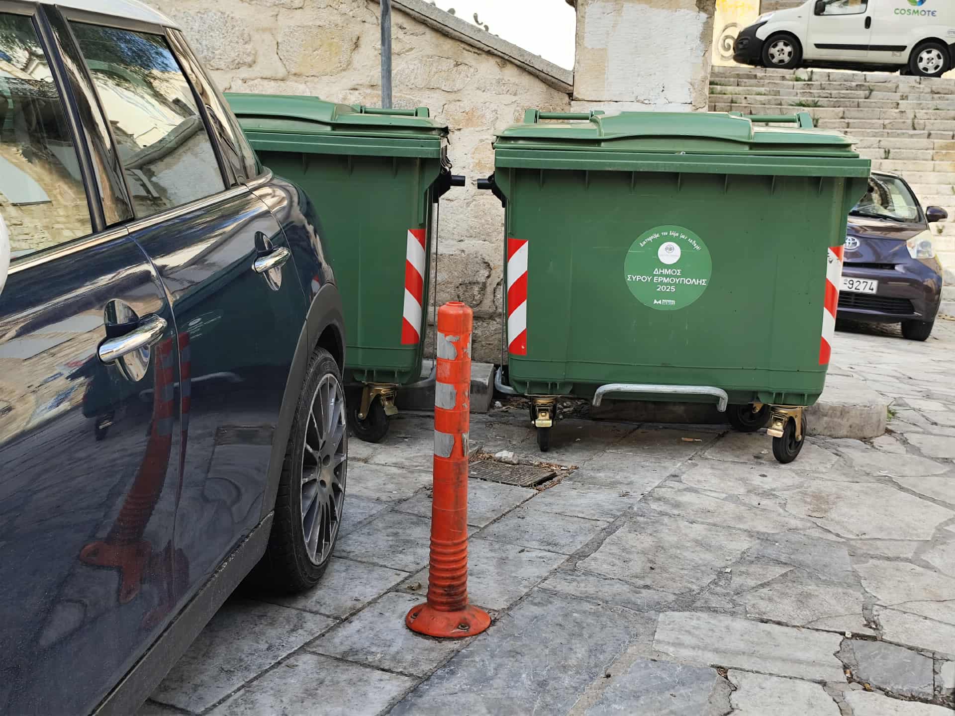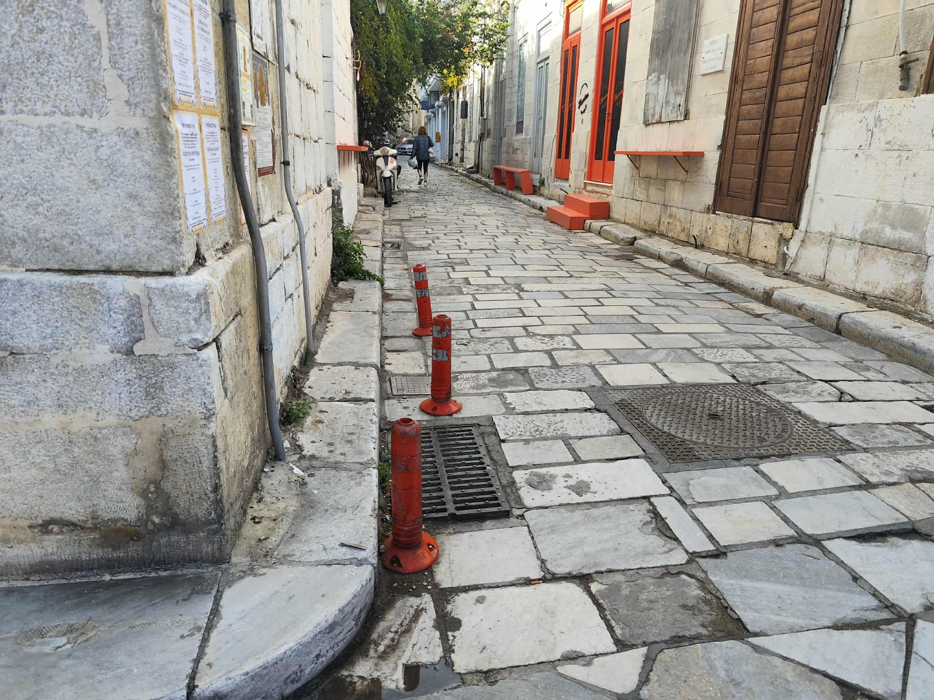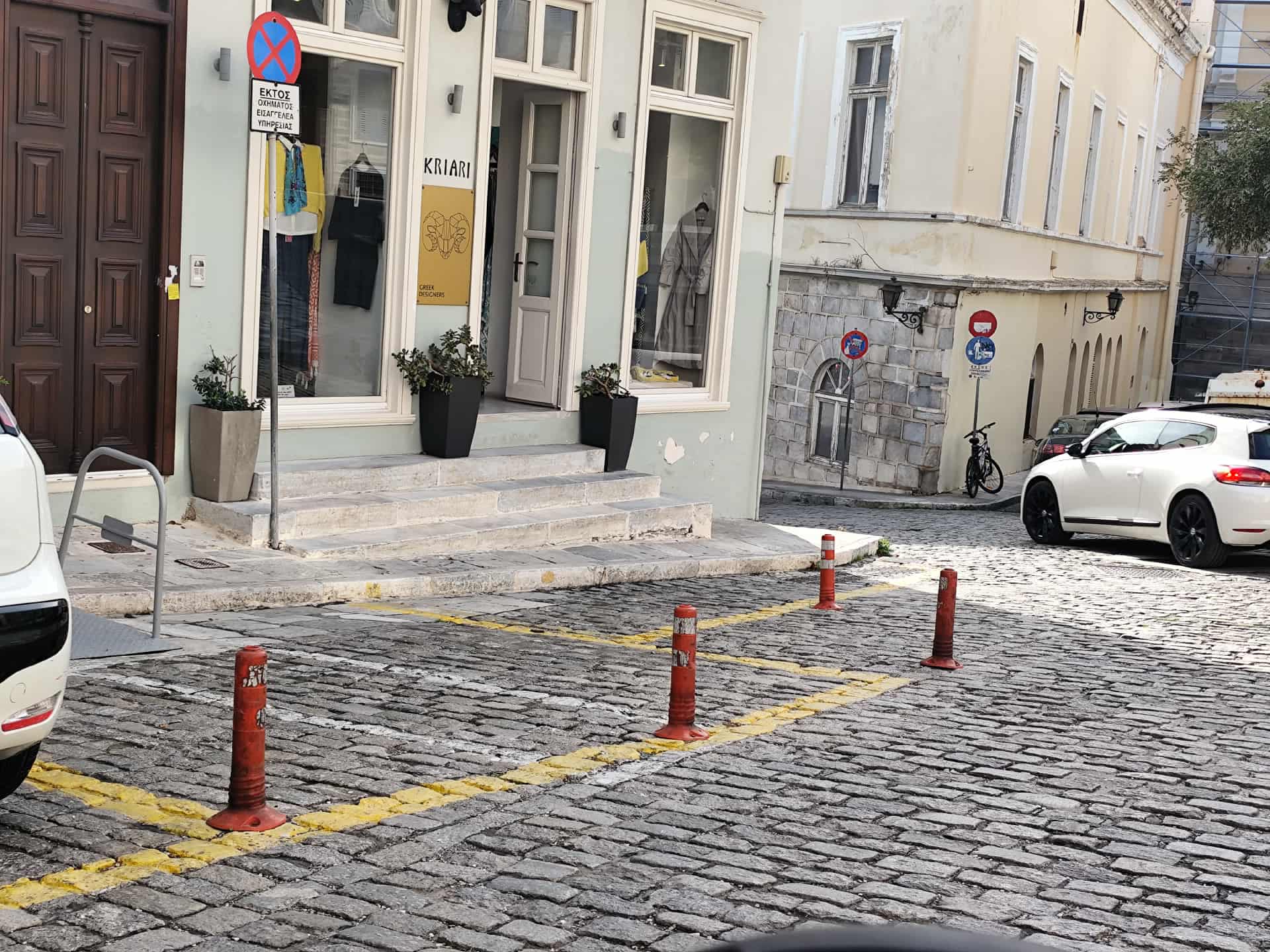 Οι φωτογραφίες της “Κοινής Γνώμης” αποτυπώνουν πως πράγματι η πόλη έχει γεμίσει από πλαστικά πορτοκαλί κολωνάκια, κατάσταση που δημιουργεί αποκρουστική εικόνα σε πολλά κεντρικά και μη, σημεία.