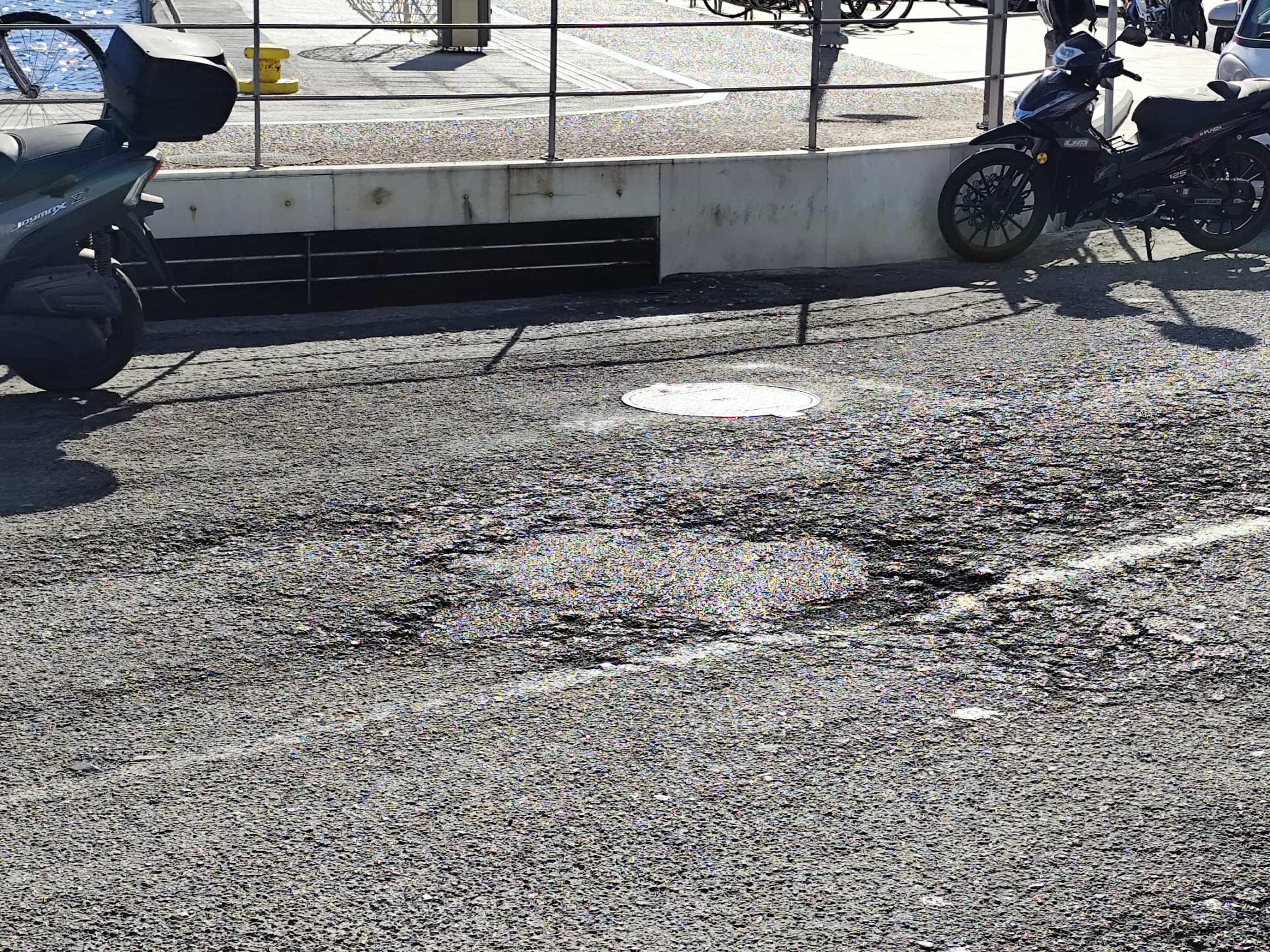 Ειδικότερα, μέρη της παλιάς ασφαλτόστρωσης στην Ακτή Εθνικής Αντίστασης (συμβολή με οδό Χίου) έχουν αποκολληθεί, με αποτέλεσμα να έχουν διαμορφωθεί έντονες ανομοιομορφίες αλλά και λακκούβες. Η μία εξ αυτών, δε, είναι αρκετά εκατοστά βάθους και όπως περιγράφουν οδηγοί μηχανών, αν ένας δικυκλιστής χάσει την ισορροπία του, κυρίως βραδινές ώρες, θα πέσει και θα τραυματιστεί.
