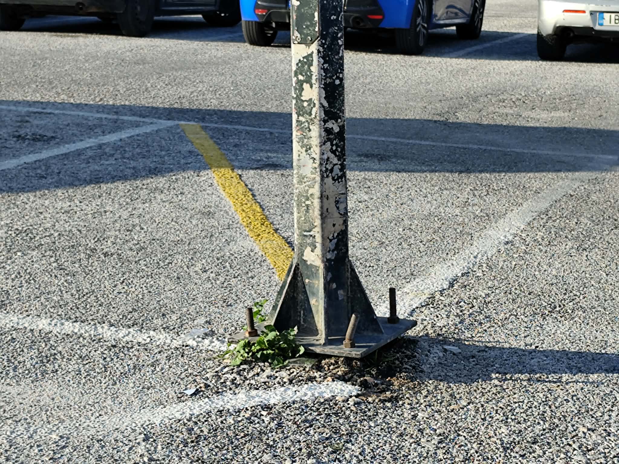 Τα παραπάνω επιβεβαιώνονται από την κατάσταση των δημοτικών φωτιστικών, τα οποία τόσο στις βάσεις τους, όσο και στους γλόμπους με τις λάμπες, φέρουν σημαντικές φθορές. Συγκεκριμένα, σε δύο φωτιστικά δεν υπάρχει κάλυμμα με αποτέλεσμα οι λάμπες να είναι εκτεθειμένες σε βροχόπτωση αλλά και τυχόν βανδαλισμούς, που θα προκαλούσαν “βραχυκύκλωμα” στον φωτισμό του parking, όπως επίσης οι βάσεις έχουν αποχρωματιστεί καθώς και σκουριάσει.