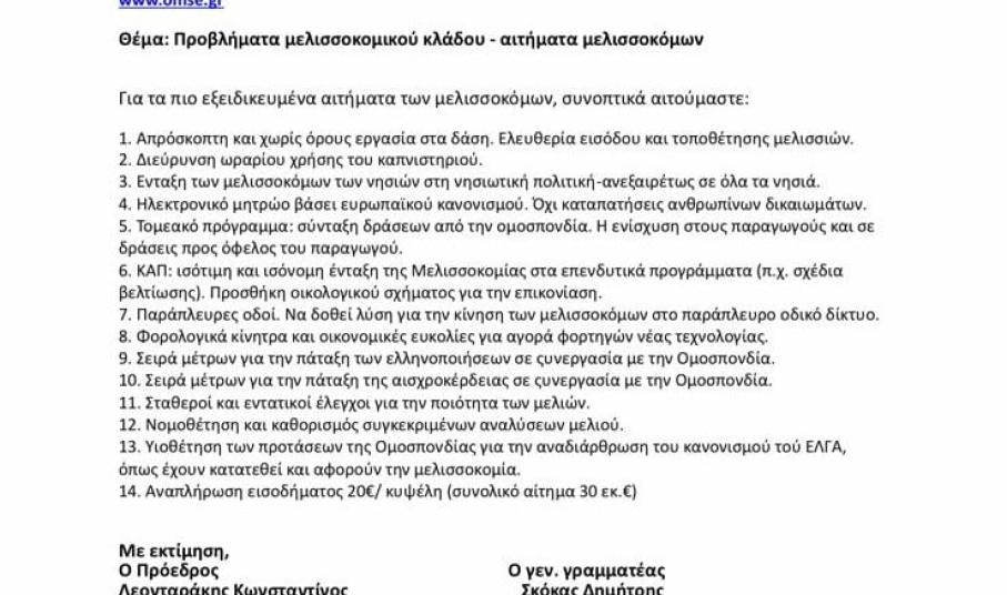 Αναλυτικά τα αιτήματα: