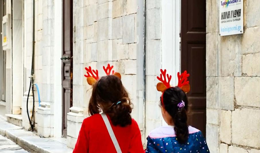 Συγκεκριμένα, ο κεντρικός πεζόδρομος έχει γεμίσει από παιδικές φωνές που τραγουδούν τα κάλαντα, ενώ καθ΄ όλη τη διάρκεια του πρωινού παίζουν εορταστικά τραγούδια. Παράλληλα, ένας πανέμορφος ξυλοπόδαρος συνομιλεί με τα μικρά παιδιά, ανταλλάσσοντας ευχές για υγεία, αγάπη και ευτυχία.