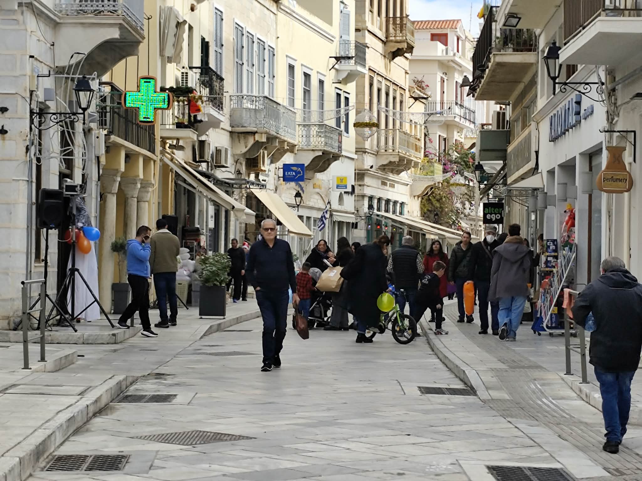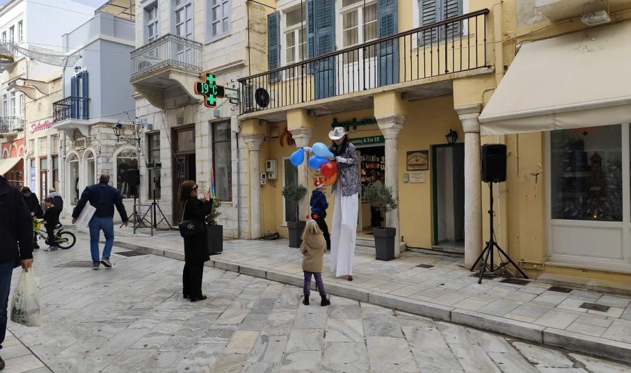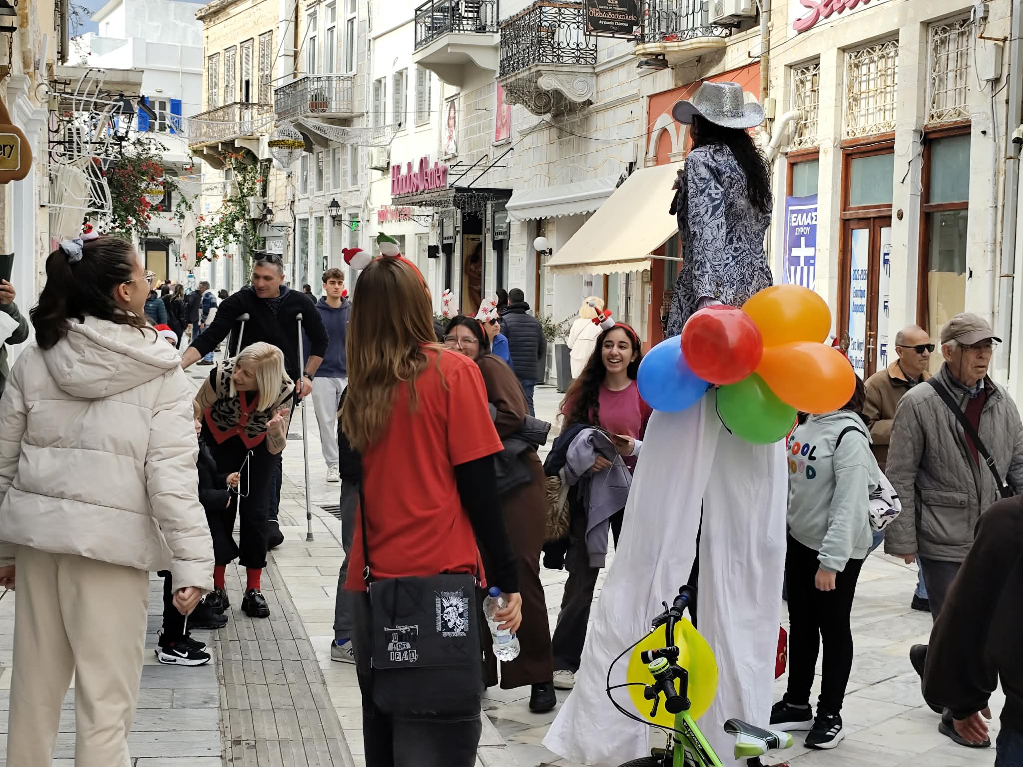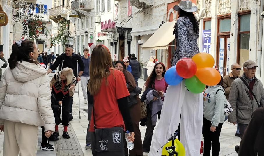 Σε γιορτινό ρυθμό “κινούνται” οι εμπορικοί δρόμοι της Ερμούπολης, σήμερα, παραμονή Χριστουγέννων, καθώς με φροντίδα του Εμπορικού Συλλόγου Σύρου, υπάρχουν όμορφες εκπλήξεις για μικρούς και μεγάλους.