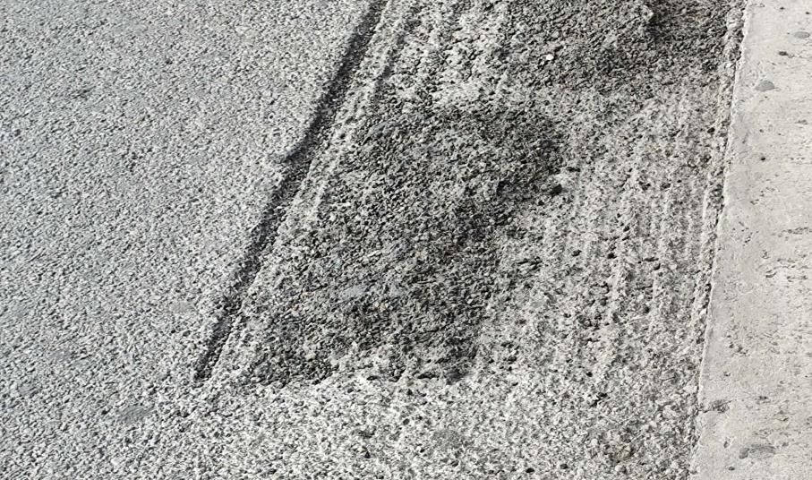 Συγκεκριμένα, ένα τμήμα του οδοστρώματος έχει “τραβήξει” κατεύθυνση αποσύνθεσης, καθώς η άσφαλτος έχει αποκολληθεί, με αποτέλεσμα να υπάρχει ανομοιομορφία στην επιφάνειά του. Τονίζεται πως η συγκεκριμένη λωρίδα κάποιων μέτρων, αν και βρίσκεται στην άκρη του δρόμου, ωστόσο, προκαλεί προβλήματα σε πεζούς και οδηγούς.