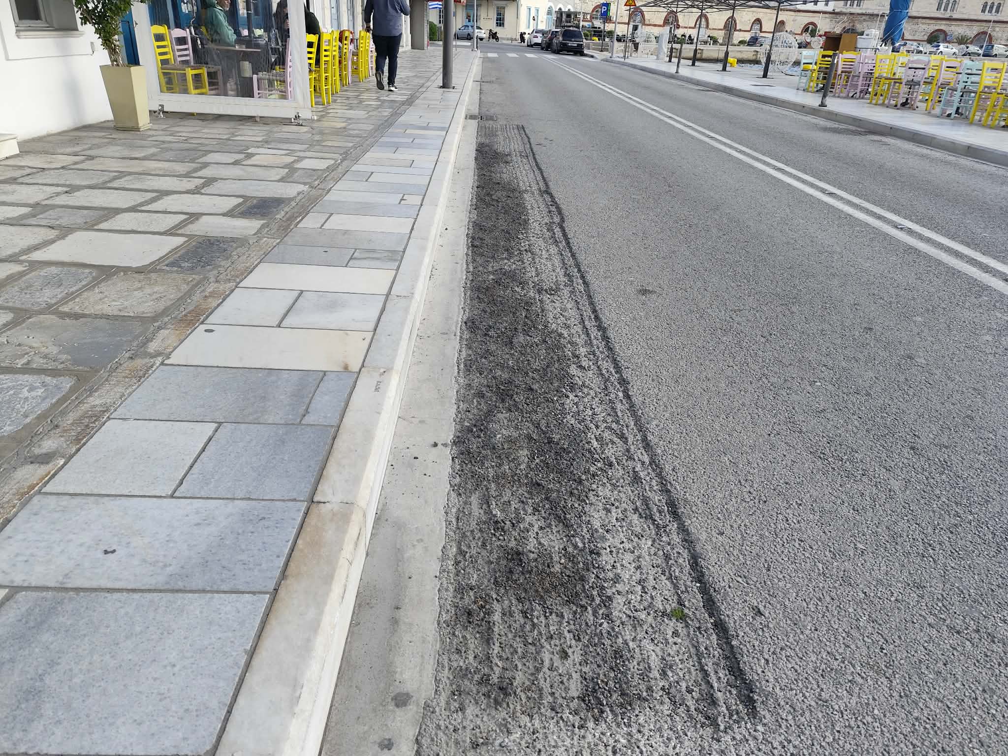 Τη δρομολόγηση εργασιών κάλυψης της μικρής λωρίδας που φέρει φθορές, στην παραλιακή ζώνη της Ερμούπολης και συγκεκριμένα στο ύψος των επιχειρήσεων εστίασης, προς την πλατεία Κανάρη, ζητούν πολίτες, με φόντο ήπια επικινδυνότητα που υπάρχει για πεζούς και οδηγούς μηχανών.