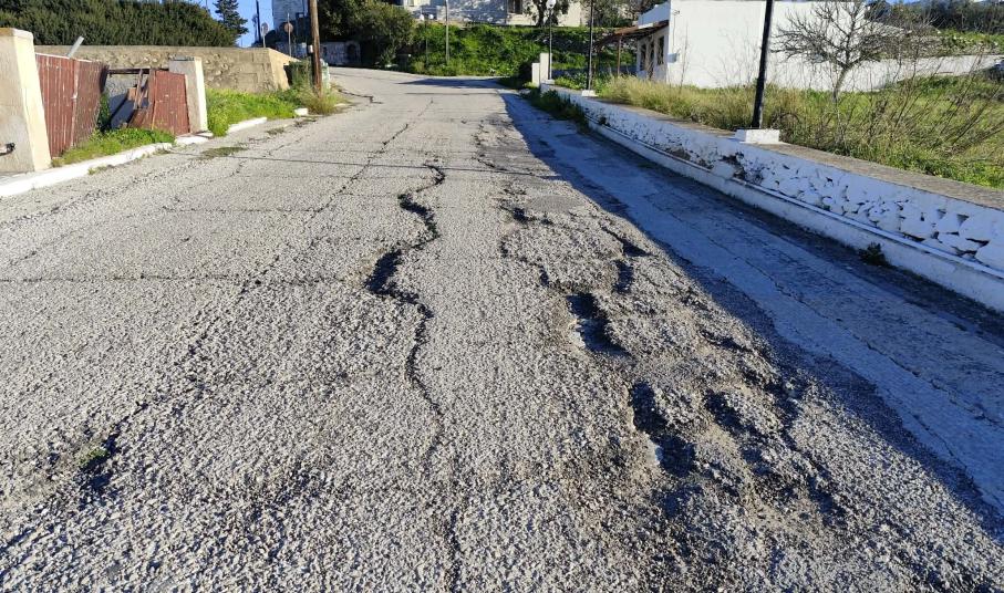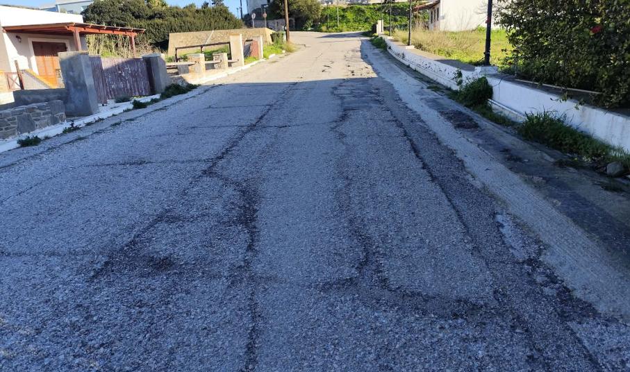 Πρόκειται για έναν από τους χειρότερους δρόμους σε χωριό της Σύρου, καθώς τμήματα της παλιάς ασφαλτόστρωσης έχουν υποχωρήσει, με αποτέλεσμα οι πεζοί να μην μπορούν να περπατήσουν, αλλά και οι οδηγοί μηχανών να αναγκάζονται σε συνεχείς και άκρως επικίνδυνους ελιγμούς.