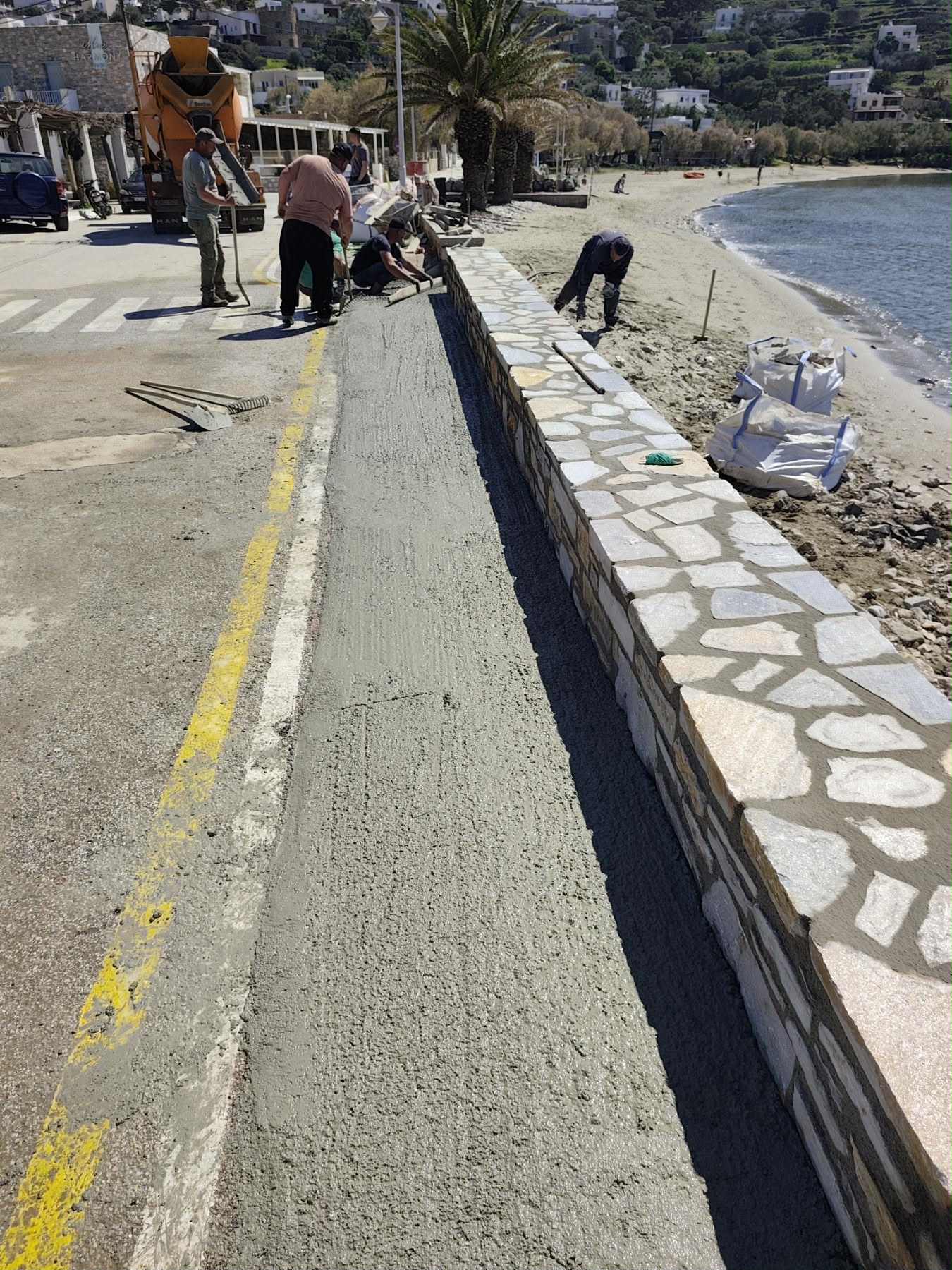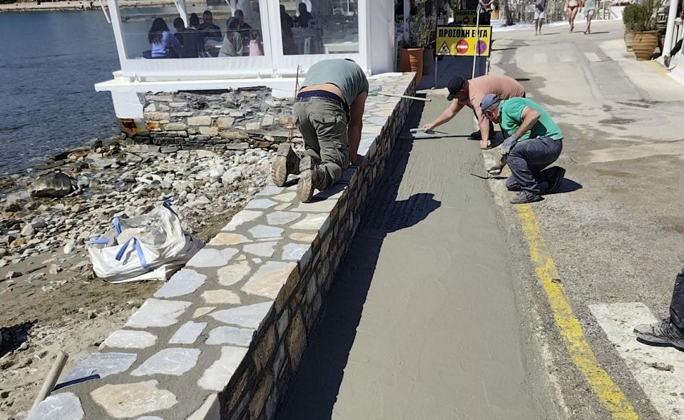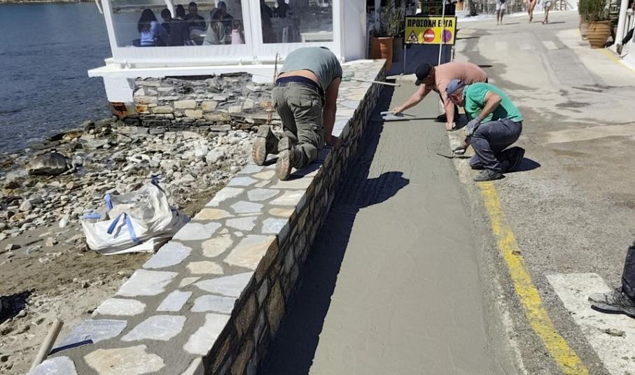 Το Κίνι αποτελεί έναν από τους πιο ωραίους και επισκέψιμους προορισμούς για τους επισκέπτες της Σύρου και ως εκ τούτου, το Λιμενικό Ταμείο όφειλε να προχωρήσει σε “επουλώσεις”. Συγκεκριμένα, όλες τις τελευταίες ημέρες, αναπτύσσονται εργασίες τσιμεντόστρωσης και αποκατάστασης του τοιχίου, στο παραλιακό τμήμα που χτυπήθηκε χωρίς έλεος από τον μεγάλο κυματισμό.
